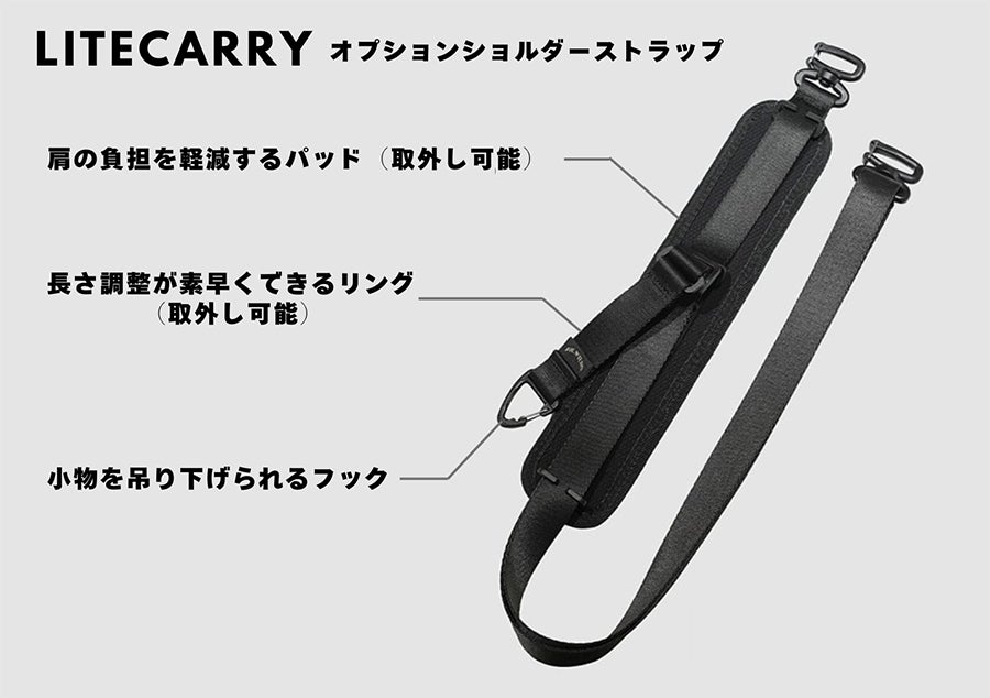 ショルダーストラップ「LiteCarry」付きのリターンも用意しました。