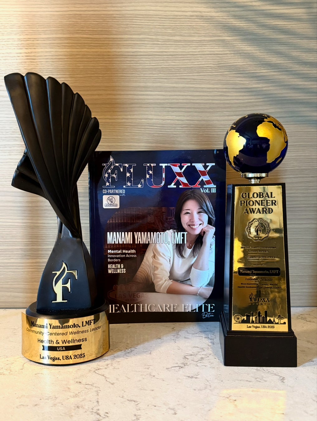 特定非営利活動法人メンタルヘルス環境向上プロジェクトの創設者・代表理事、山本真奈美(LMFT/米国臨床心理士)は、米国ラスベガスで行われた国際的アワードイベント Fluxx Awards 2025 の Healthcare and Mental Health 部門において、Global Pioneer Award 「Mental Health Innovation Across Borders」ならびに「Community Centered Wellness Leader」の二部門を受賞いたしました。