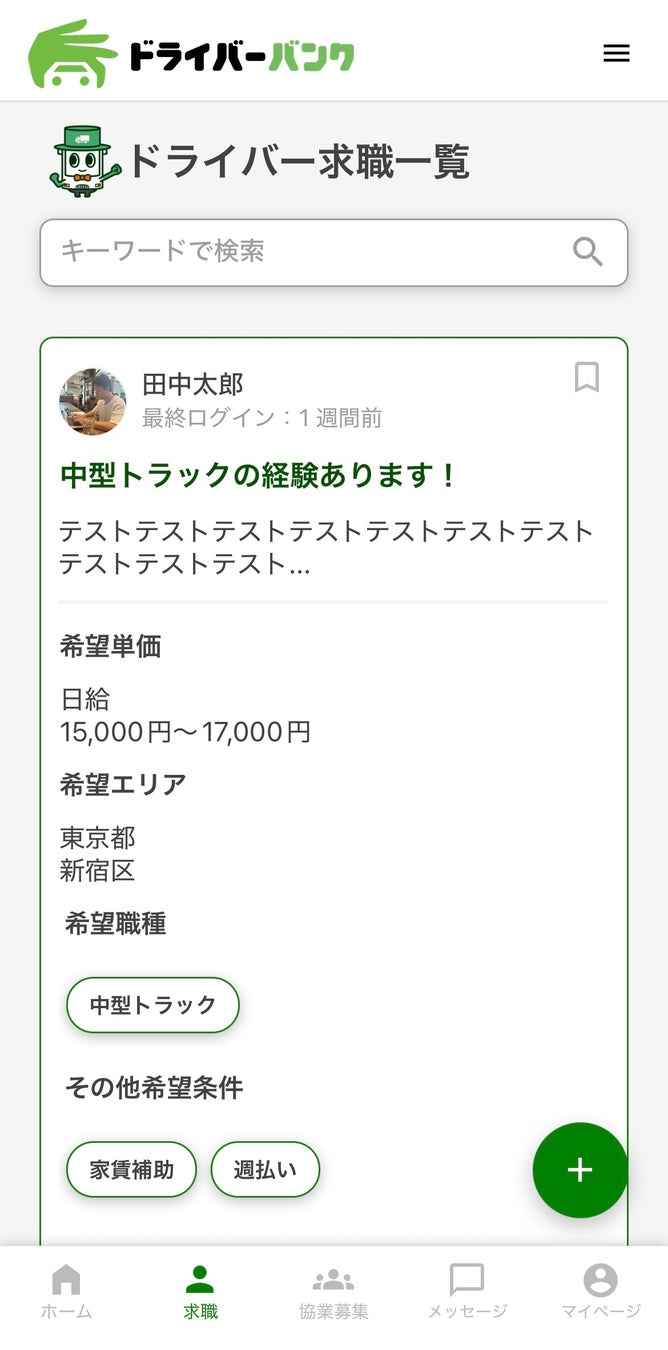 さらに「ドライバーバンク」では、企業同士が協力会社を募集できる仕組みも搭載しています。自社の業務を補完するパートナー企業や提携先を効率的に探すことが可能で、これにより業務拡大等のサポートもしております。