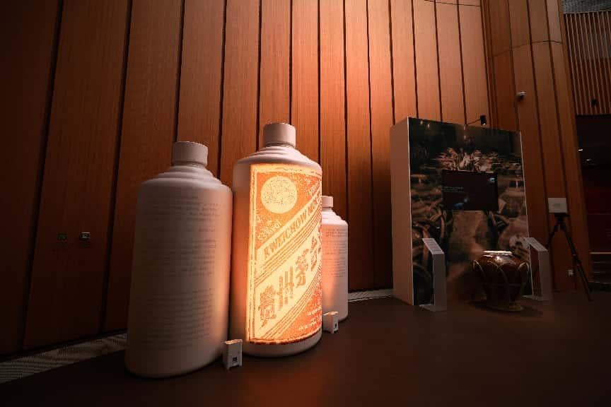 中国パビリオンの中では、全長13メートルに及ぶ巨大なLEDスクリーンが設置されています。そこで、茅台の産地が持つ類まれな自然環境と、千年にわたり受け継がれてきた醸造の技法、即ち赤水河流域の気候風土と純粋な職人魂が映し出されています。力強く示されているのは、「この地を離れては、稀代の名酒を醸し難い」という真理です。