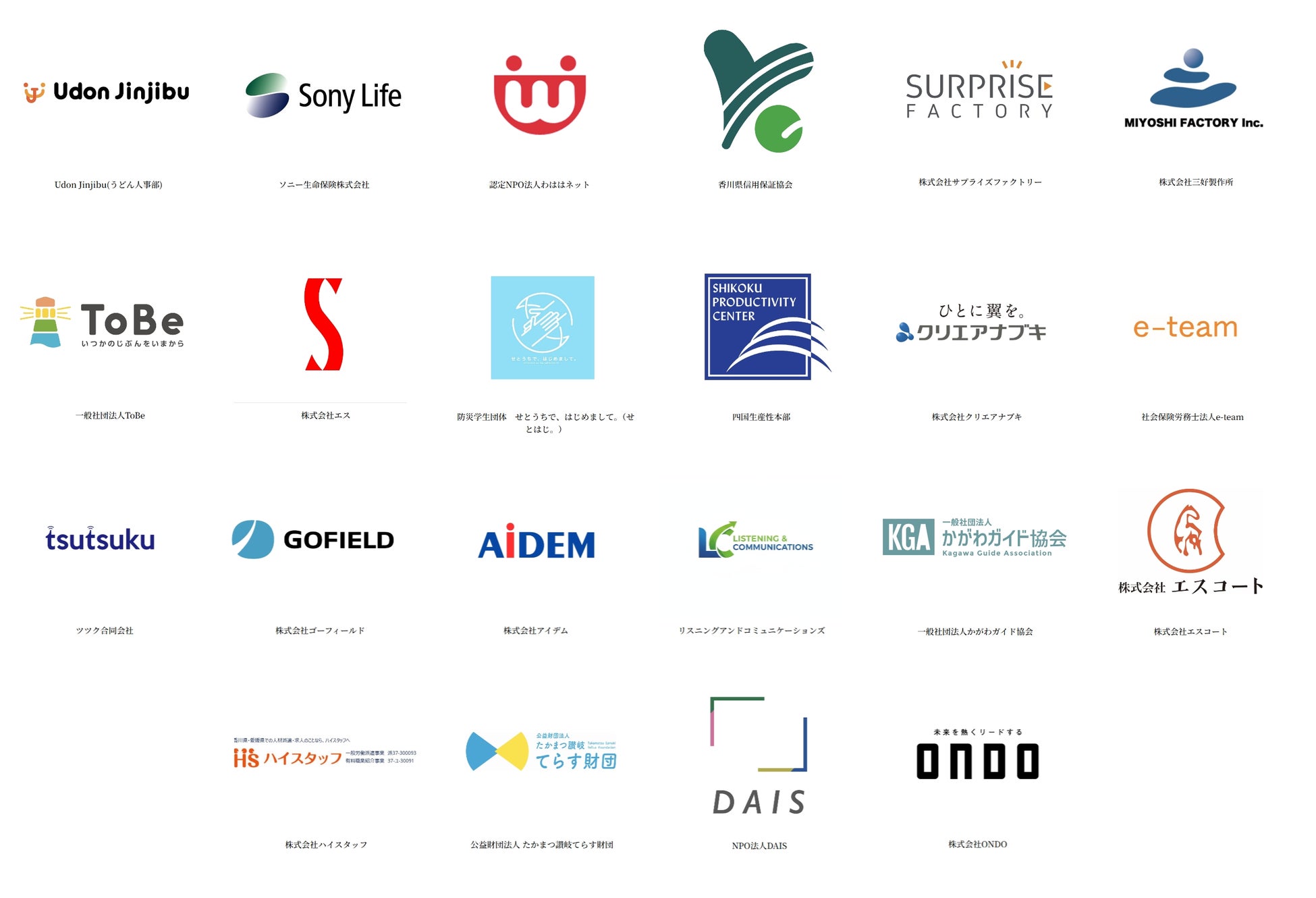 ■出展企業(順不同):Udon Jinjibu(うどん人事部) / ソニー生命保険株式会社 / 認定NPO法人わははネット / 香川県信用保証協会 / 株式会社サプライズファクトリー / 株式会社三好製作所 / 一般社団法人ToBe / 株式会社エス / 防災学生団体 せとうちで、はじめまして。(せとはじ。) / 四国生産性本部 / 株式会社クリエアナブキ / 社会保険労務士法人e-team / ツツク合同会社 / 株式会社ゴーフィールド / 株式会社アイデム / リスニングアンドコミュニケーションズ / 一般社団法人かがわガイド協会 / 株式会社エスコート / 株式会社ハイスタッフ / 公益財団法人たかまつ讃岐てらす財団 / NPO法人DAIS / 株式会社ONDO