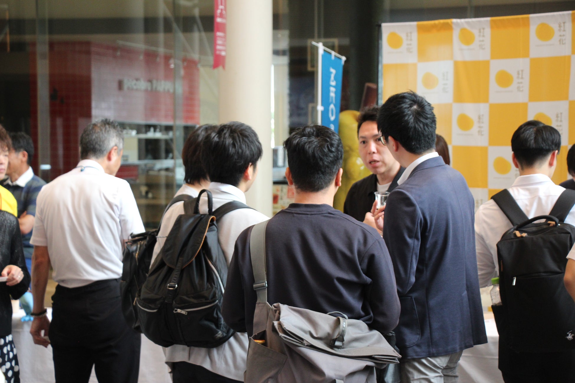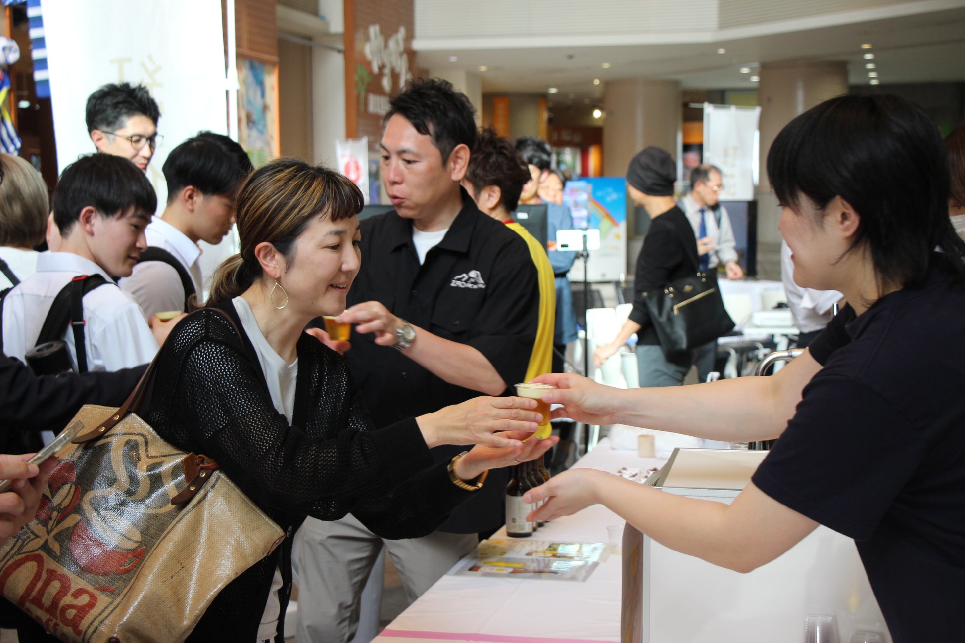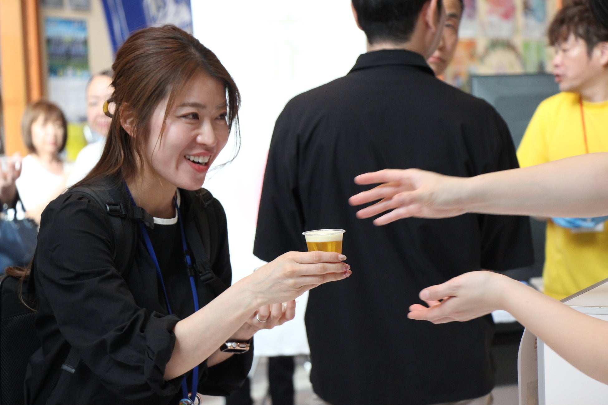 試飲会では、関係者の方々だけでなく仕事帰りや外出で霞城セントラルへ立ち寄った一般の方々も、2種類のクラフトビールを味わっていただきました。ほんのりと黄色みがかった泡が特徴のビールを口にした来場者様からは、「想像以上のおいしさ!」と絶賛の声が。