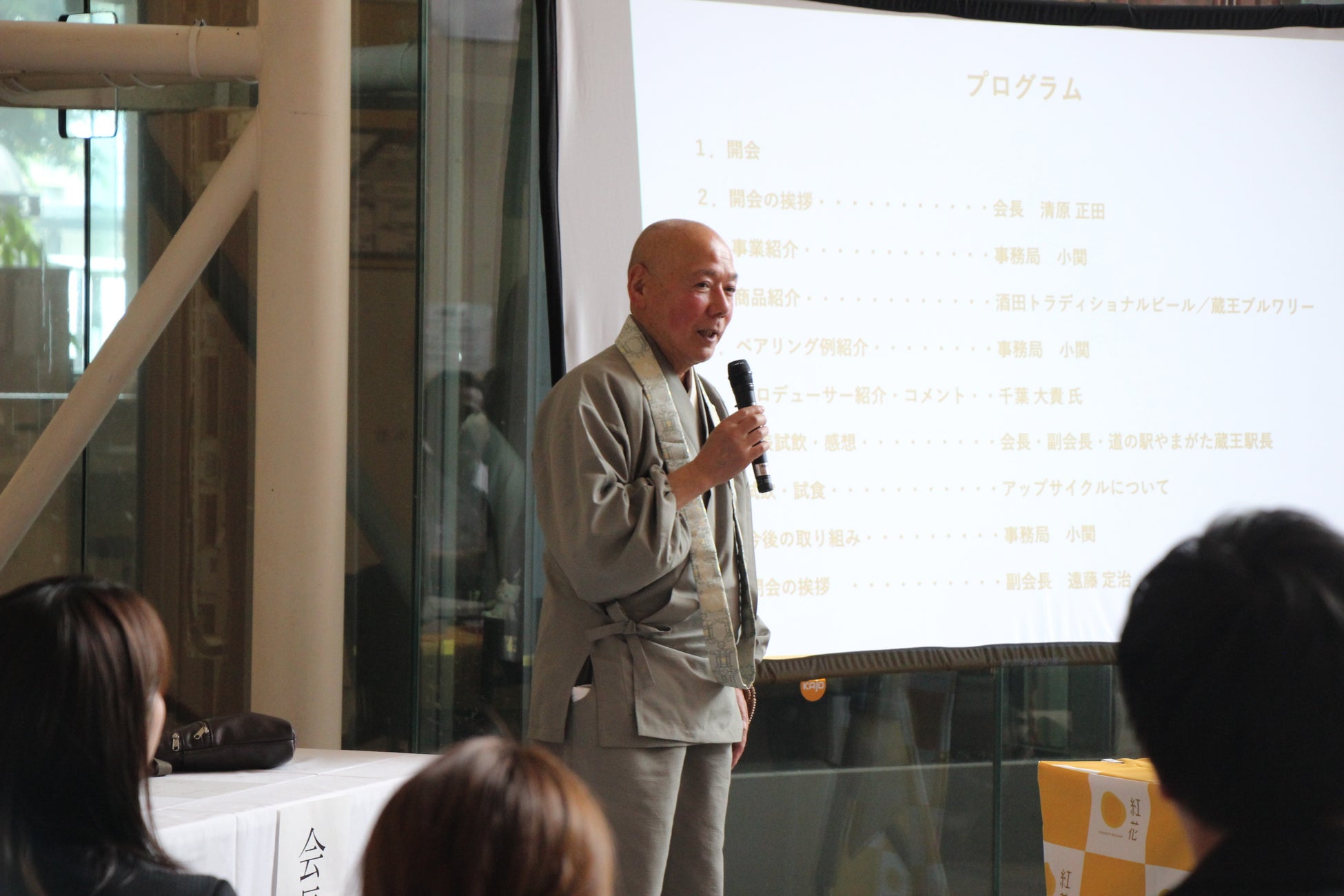 発表会では、紅花推進協議会会長である山寺立石寺住職の清原正田氏と、同プロジェクトのプロデューサーで有限会社マイティー千葉重 代表取締役の千葉大貴氏からプロジェクトへの想いが語られました。