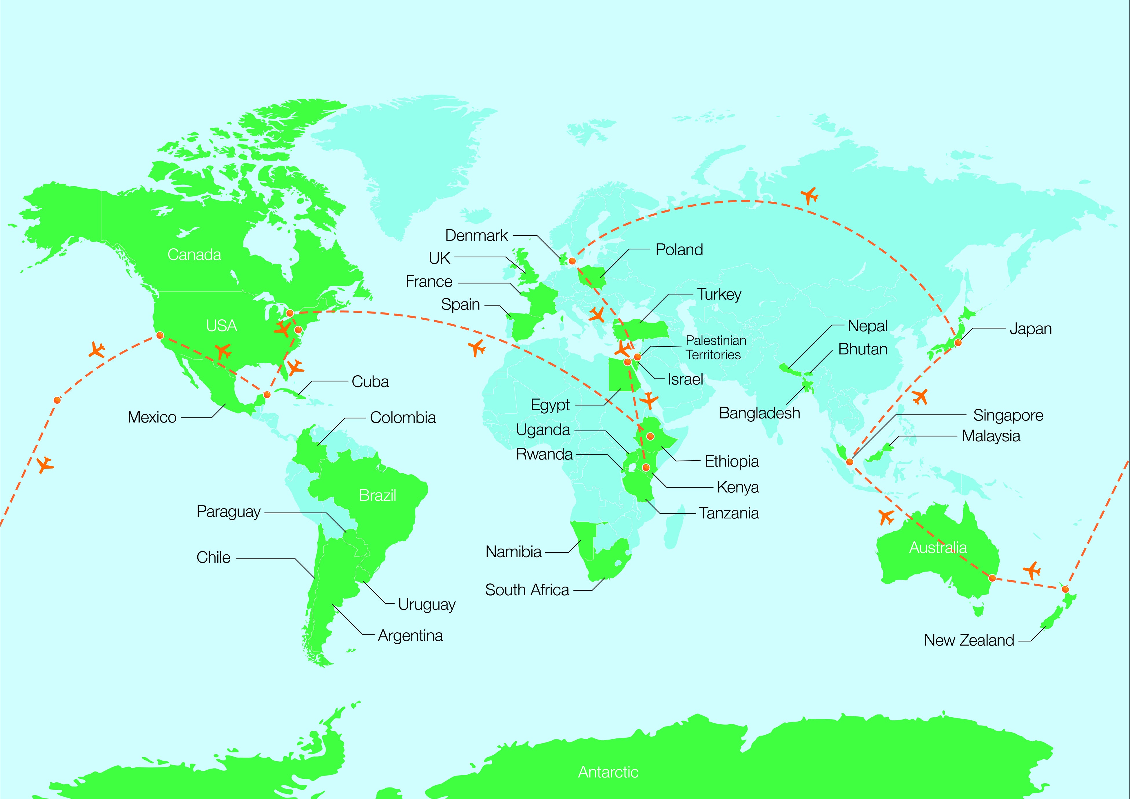 - 世界地図と1年間の旅のルート