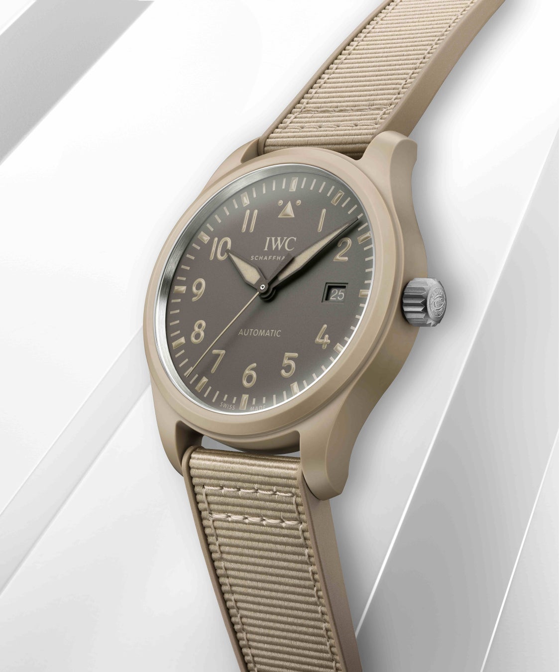 シャフハウゼン/ジュネーブ、2025年6月2日:IWCシャフハウゼン パイロット・ウォッチ コレクションの一つ「トップガンのカラー」に新色 “モハーヴェ・デザート”が加わりました。41mmのケースは砂漠を彷彿とさせる色合いのセラミックで作られており、この色は米国海軍パイロットのフライトスーツと、西モハーヴェ砂漠のチャイナレイク周辺の風景にインスピレーションを得ています。