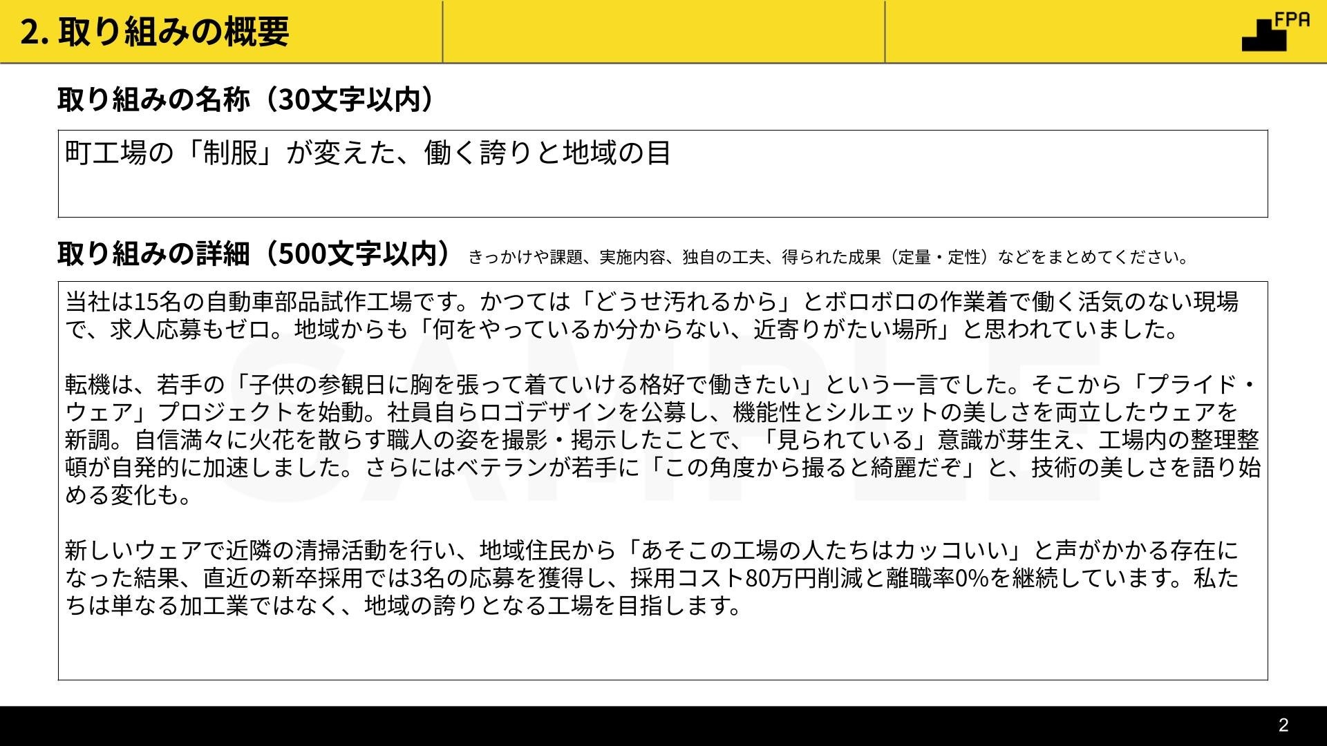 Factory Pride Award 応募資料一式