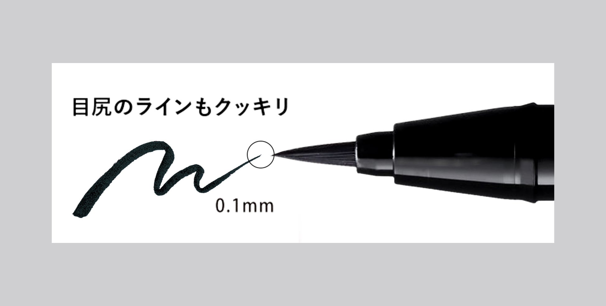 筆先0.1mmの極細ブラシで、目尻のハネやまつ毛の隙間も思い通り。液含みのよいブラシが、筆先の乾燥を防ぎ、筆割れを軽減します。筆のコシや柔らかさも追求し、初心者でもなめらかに描ける使用感に仕上げました。