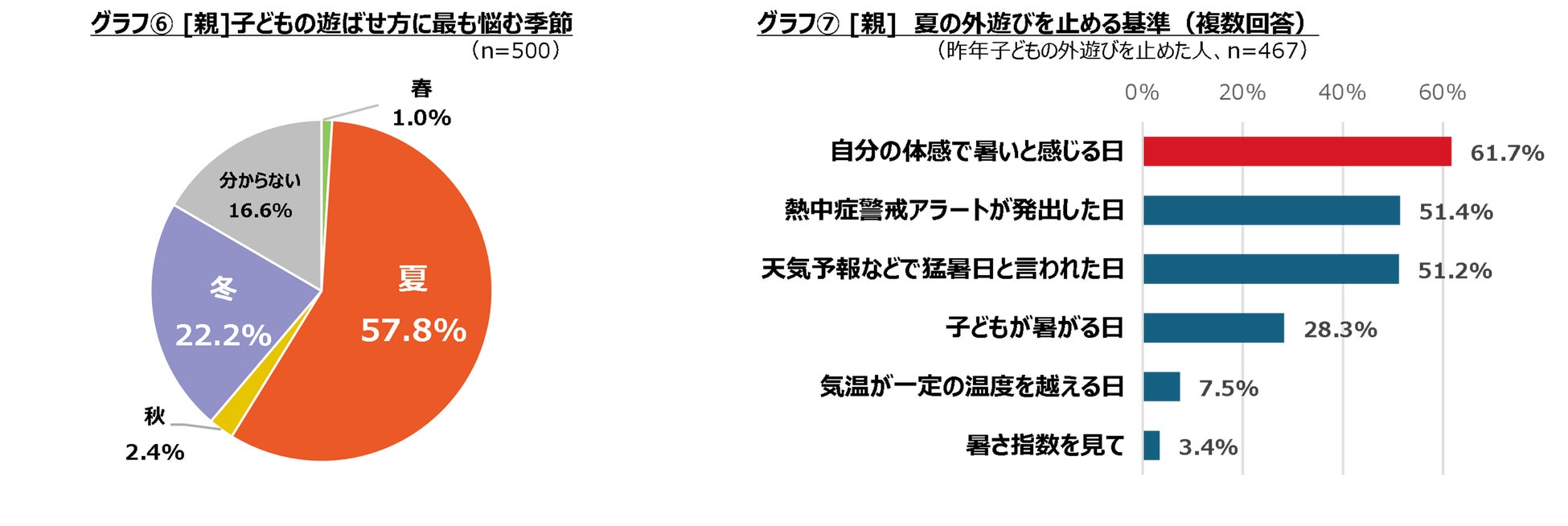 親が最も「遊ばせ方に悩む」(57.8%)夏に、親が子どもの外遊びを止める基準は「自分の体感」。