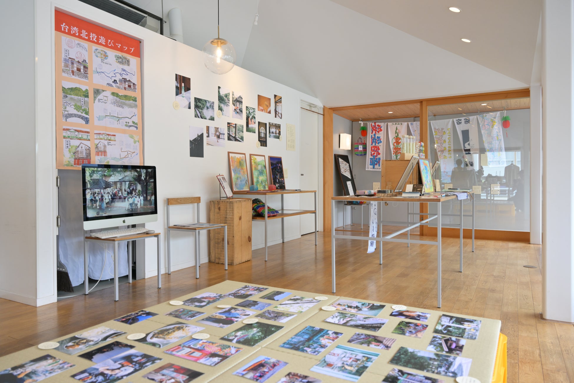 展示は「北投の家紋」から始まり、北投の重要な芸術文化施設、自然景観、地域文化を通して、北投を感じる旅へといざないます。今年は土地の記憶を「触れて使えるかたち」へと転化するため、台湾と日本の4名のデザイナー(聴勧九個N、香蘭男子電棒燙、亮亮天天画画、杉の下意匠室)による、「銭湯」と「温泉文化」をテーマにした手ぬぐいを共同制作しました。さらに、北投の多様な現代生活を表現するため、台湾のアーティスト・聴勧九個Nによる、コラージュやデジタルペインティングを用いた北投を再解釈する作品も展示し、北投の日常に対するより深い共感やつながりを呼び起こす内容となっています。