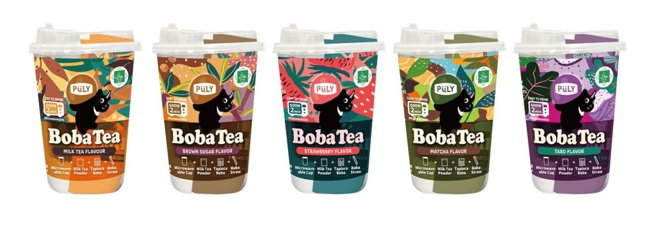 タピオカミルクティは、一過性のブームの枠を超えて、私たちのライフスタイルに定着し、現代では、ミルクティ以外の様々なティやフレーバーも展開され、タピオカドリンク好きな方々に愛されています。2025年6月初旬に、日本初上陸をはたした「プーリータピオカドリンク(BobaTea)ミルクティ」は、電子レンジで簡単に、3ステップ3分でお店の味を再現できるという手軽さと、思わず手に取りたくなるような可愛いパッケージが注目を集め、続々と取り扱い店舗を拡大しています。このたび、よりたくさんの方々のニーズにお応えするために、大人気の「ミルクティ」に続いて、「黒糖」、「ストロベリー」、「抹茶」、「タロ」の4種が日本に初上陸します。