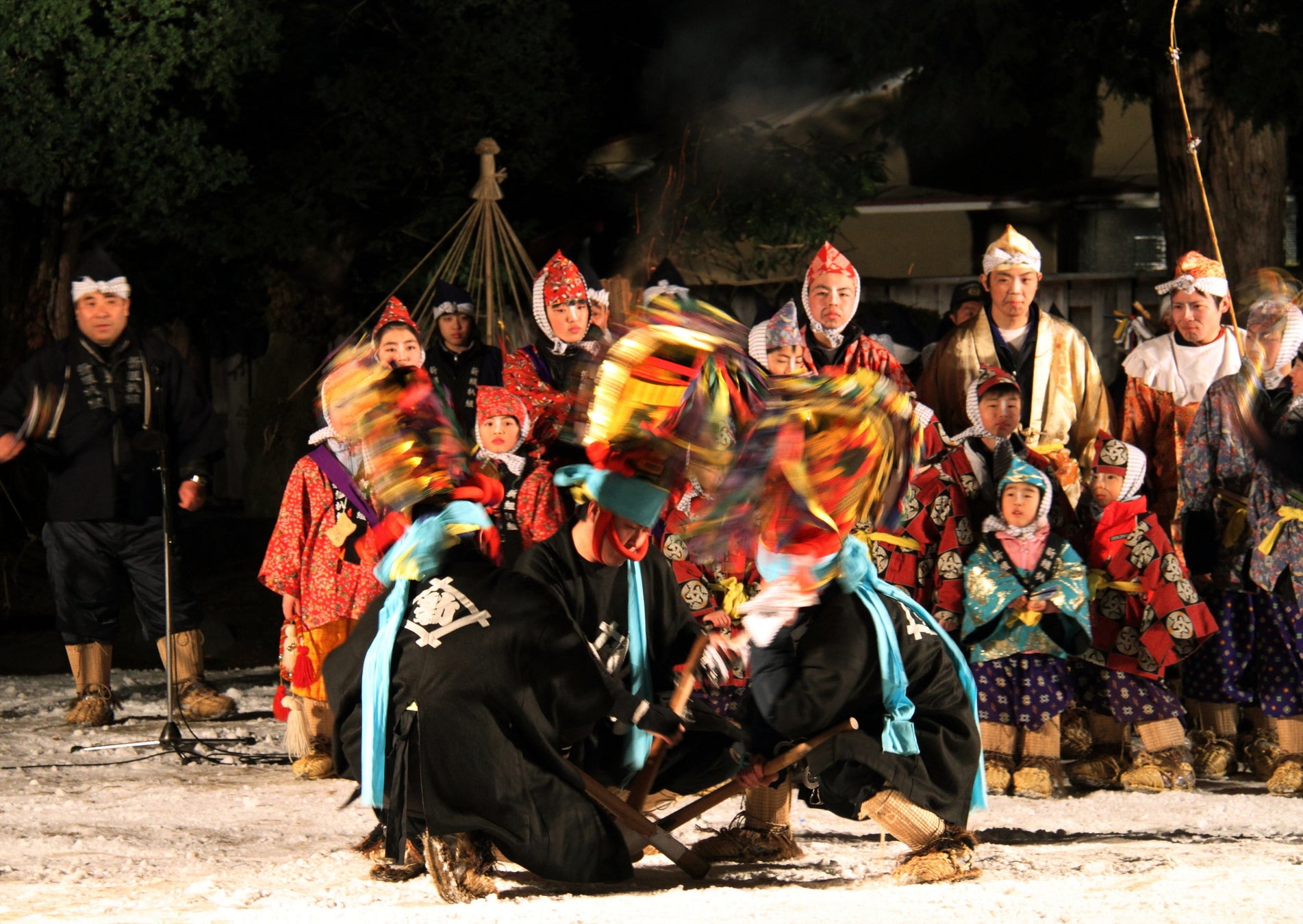 えんぶりは、青森県八戸市を中心に毎年 2月17〜20日に行われる800年以上続く豊年祈願の祭りです。馬の頭を象った烏帽子(えぼし)をかぶった舞い手が、頭を振り春を呼ぶ踊りを披露します。