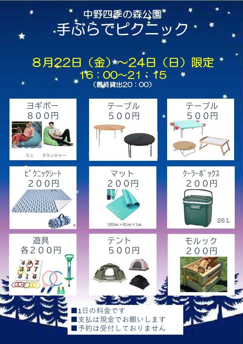 ◆ピクニックグッズ貸出 各日16:00~21:15(最終受付20:00)