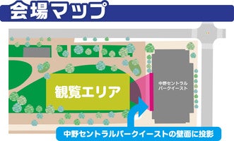 本イベントは、今年5月に発足した地域の経済団体、観光・運輸関係企業、区内大学、区内アニメ関連企業と中野区が協働でアニメ関係事業を企画・実施する「アニメでつながる中野実行委員会」が主催し、プロジェクションマッピング技術を活用して「都心で多くの人が一緒にくつろぐ」「ナイトエコノミーの活性化」といった新しい価値観を提案する取り組みです。中野区内に本社のある、国内外で著名なアニメ関係企業5社の名作アニメーションを上映することで、アニメによる観光促進、シビックプライドの醸成を目指します。