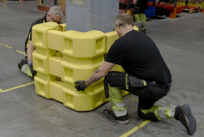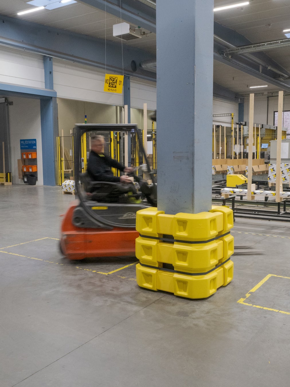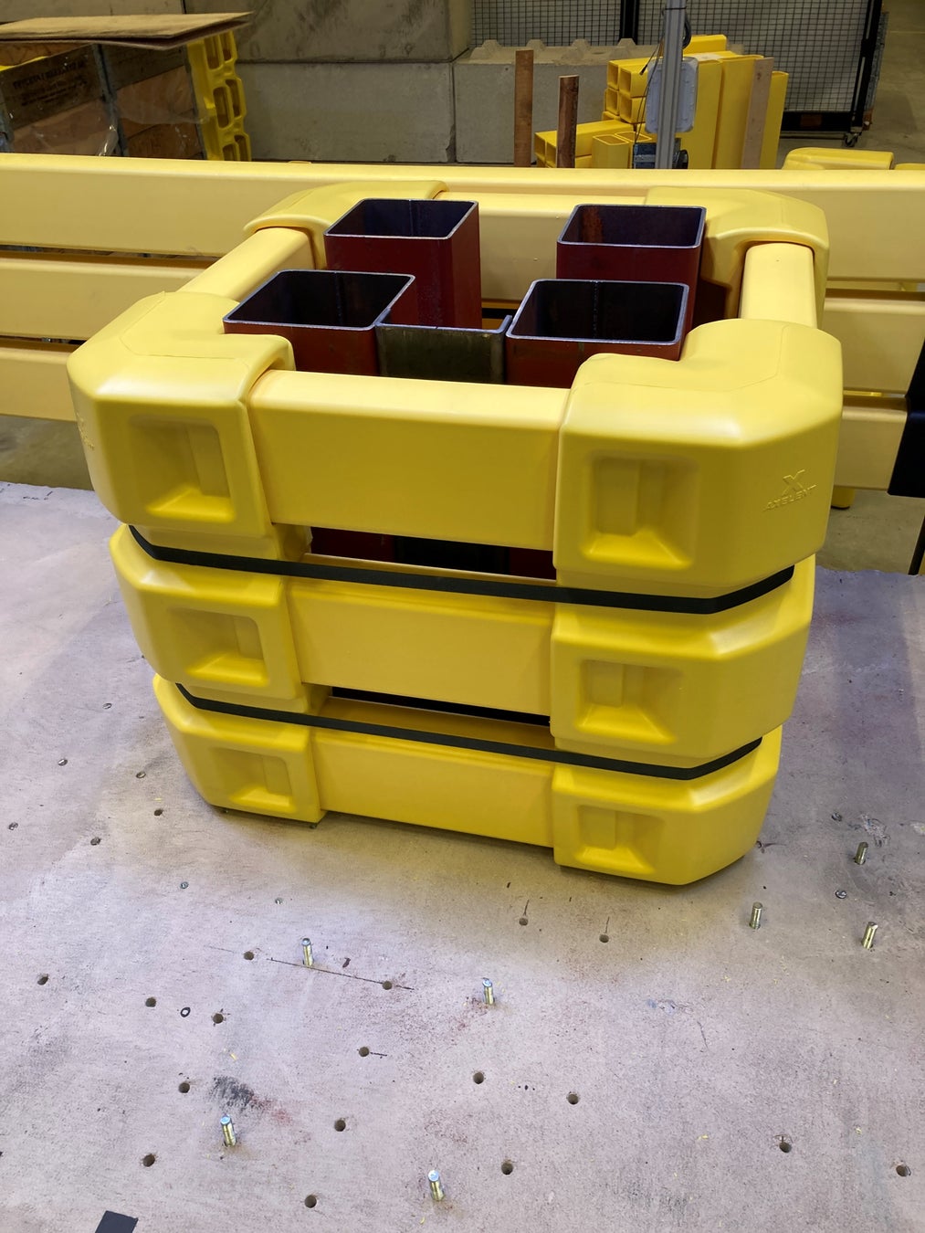 本製品は、フォークリフトなどの物流運搬車両による衝撃から、建物の柱や支柱を効果的に保護します。