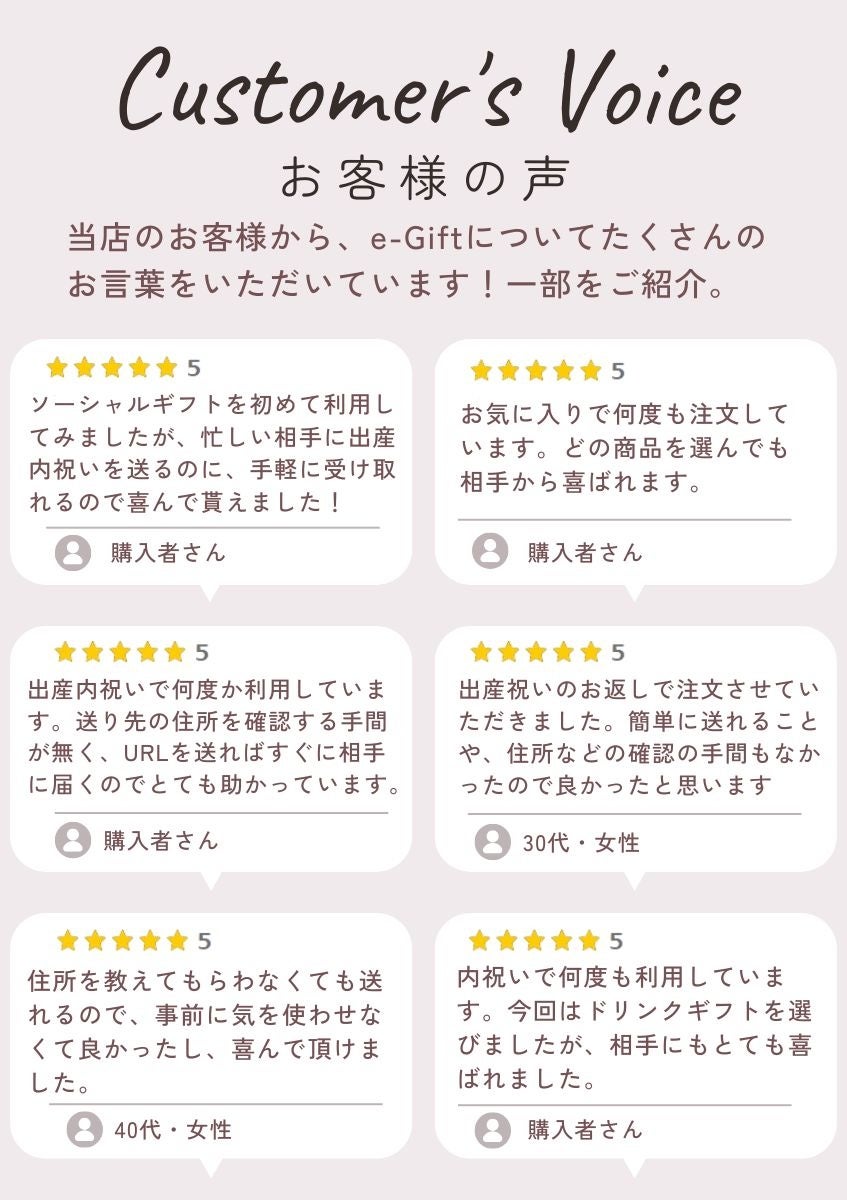 ★★★★★ 「すぐにURLが届くし、のしやメッセージも添えられるのが嬉しい」