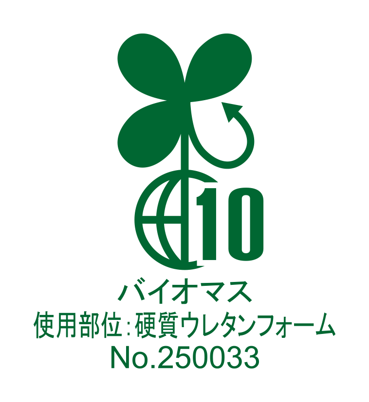 「バイオマスマーク」は、再生可能な有機資源(バイオマス)を活用し、地球環境への負荷を抑える製品であることを示す認定マークです。認定を受けた製品は、植物由来のバイオマス原料を使用することでCO2の増加を抑制し、カーボンニュートラル及び循環型社会の形成に貢献します。