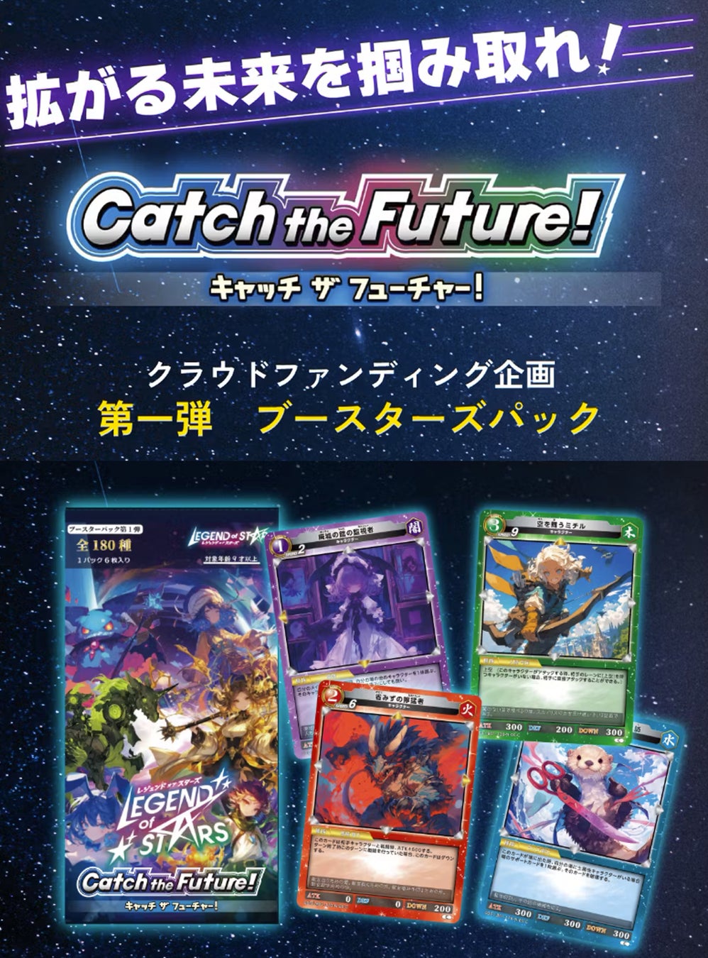 ブースターパック第1弾「Catch the Future!」 クラウドファンディング限定描きおろしカード 布製プレイマット オリジナルカードスリーブ コラボカード制作権 ロゴ&リンク付き支援者掲載 |