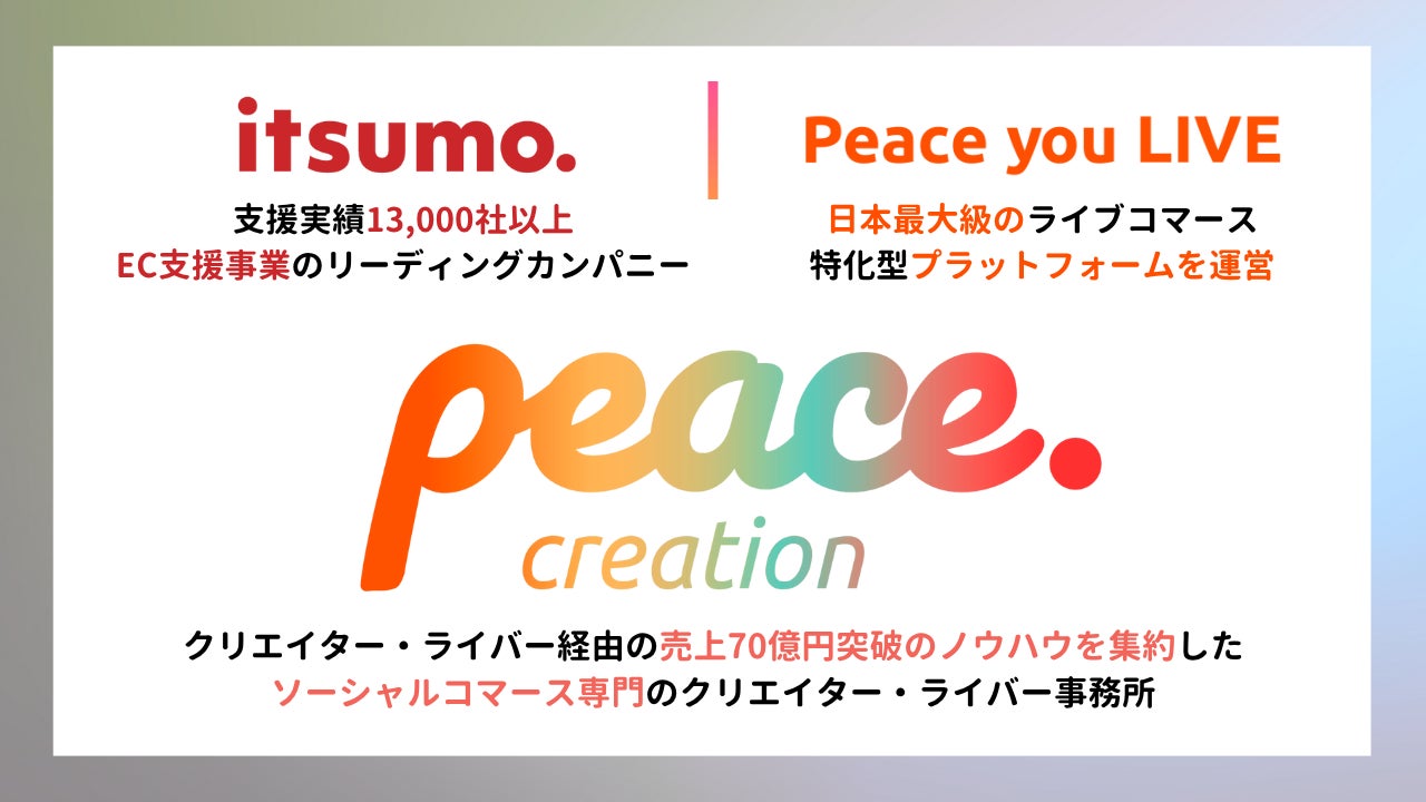 支援実績13,000社以上のいつも社と、日本最大級のライブコマースプラットフォーム「Peace you LIVE」のピースユー社が協同した唯一無二のネットワークを活用