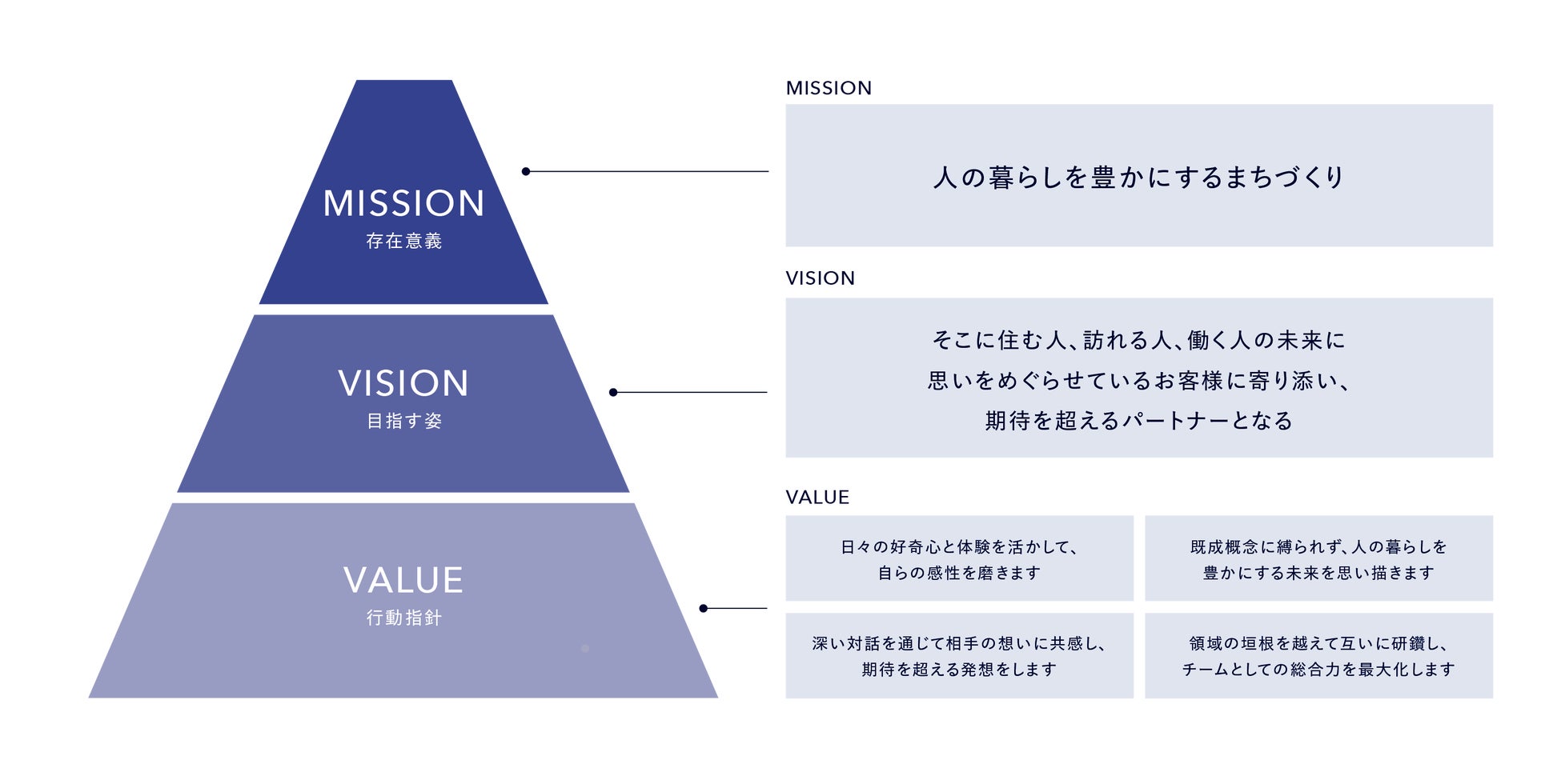 このブランドビジョンの刷新は、私たちがこれまで取り組んできたことを、”まちづくり”企業として再定義する取り組みであり、さらなる発展と価値創出を目指すものです。