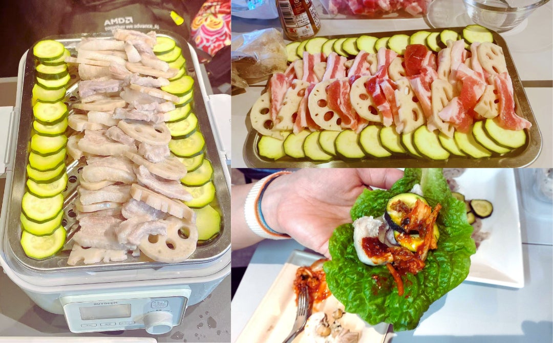 韓国風蒸し豚: スーパーで手に入る豚肉が、電気スチーマーで蒸すことで「たっぷりの脂身が全然脂っこくなく、高級肉のような甘みがあって、また一口ほしくなる」と、参加者から絶賛されました。肉を完璧な状態に仕上げる緻密な温度管理のなせる業です。