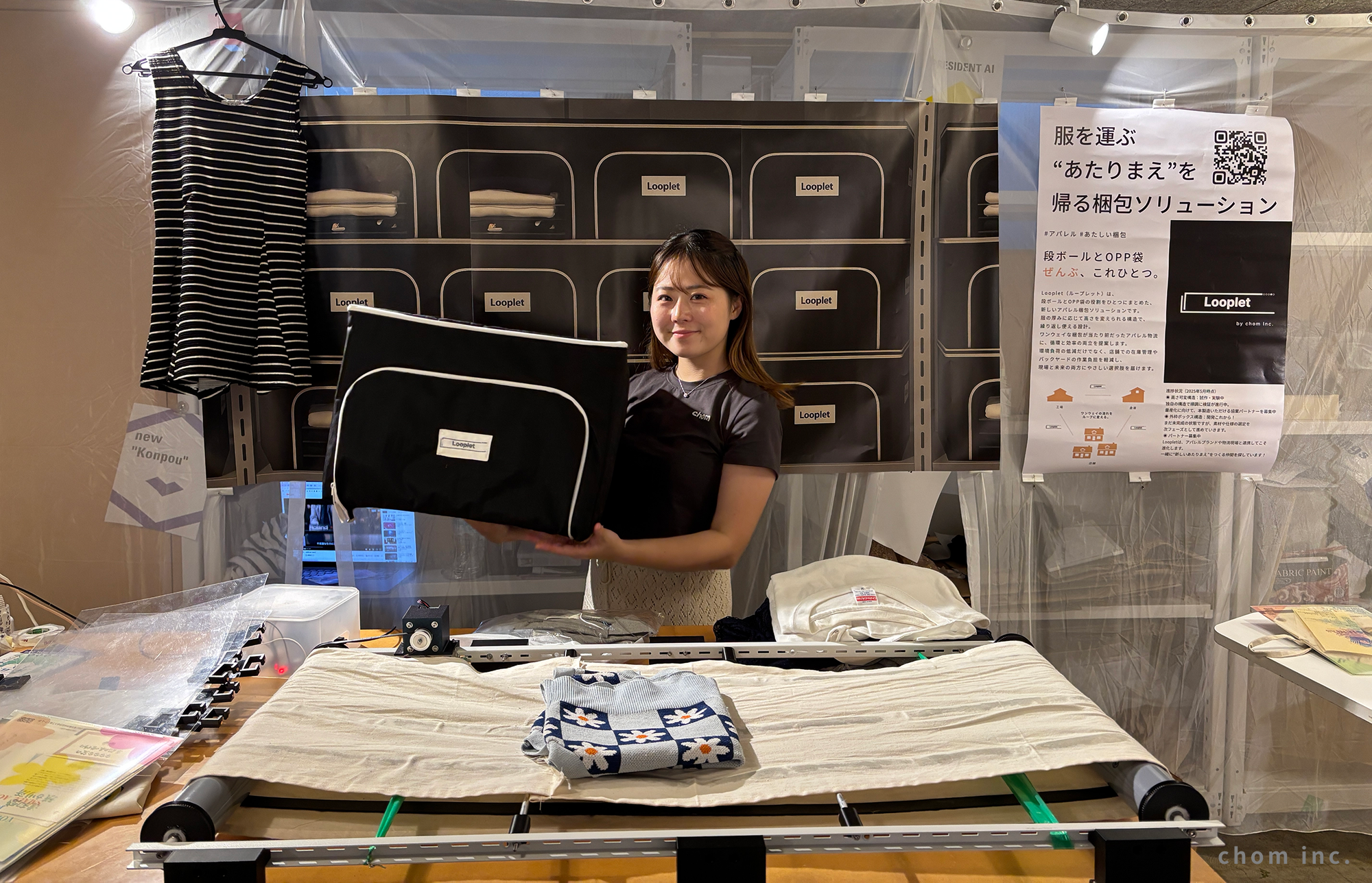 アパレル物流の「使い捨て」を、循環インフラへ。株式会社chom、段ボールとOPP袋を一体化した再利用型梱包「Looplet」を開発。