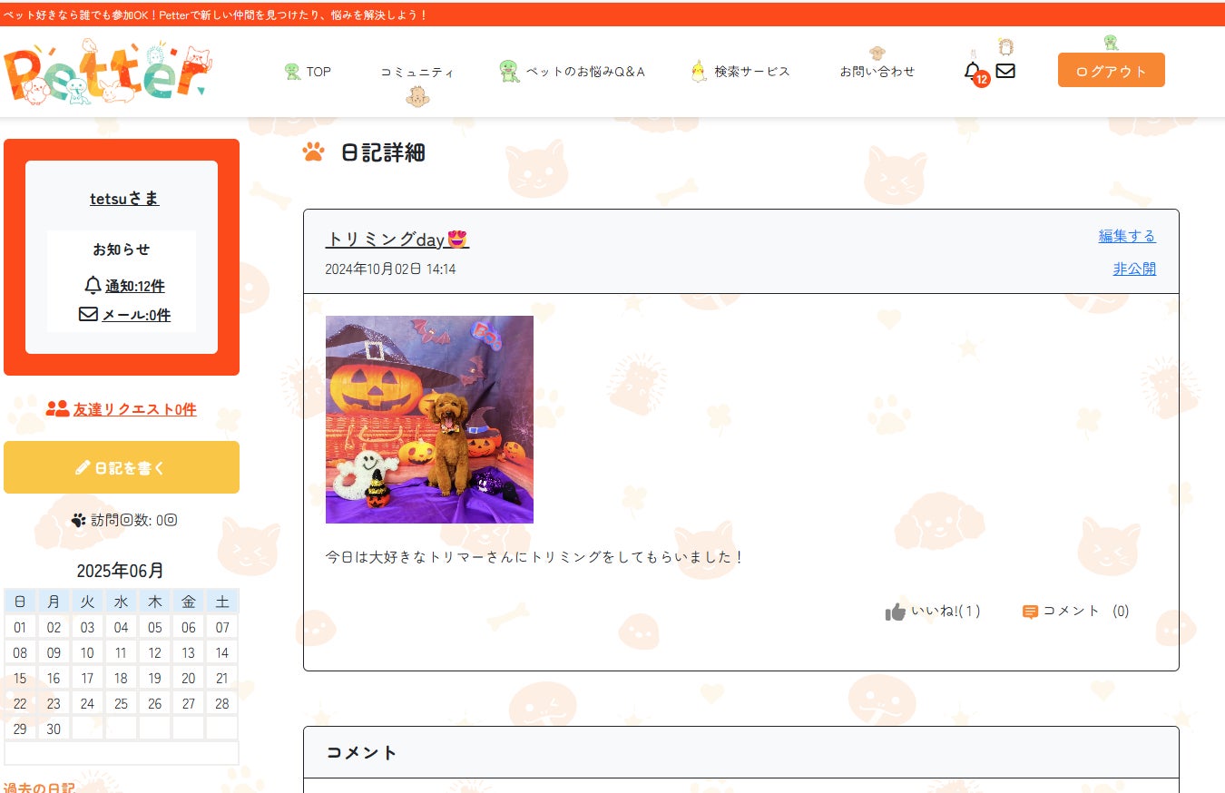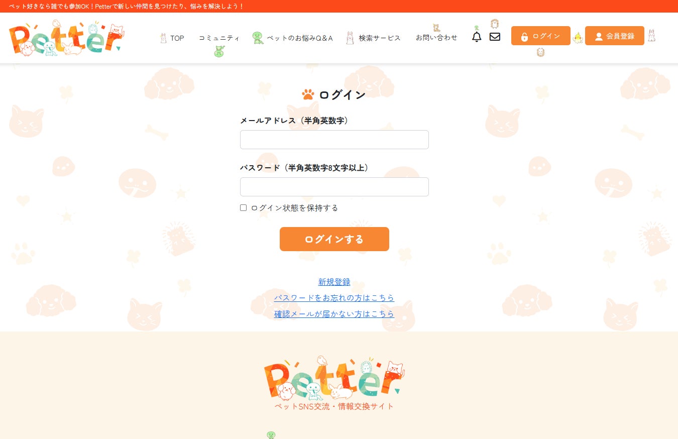 「Petter」は、犬・猫をはじめとする多様なペットを愛する人々が、共通の関心や価値観をもとに、交流・情報交換・イベント参加などを通して、豊かなペットライフを実現できる会員制コミュニティサービスです。