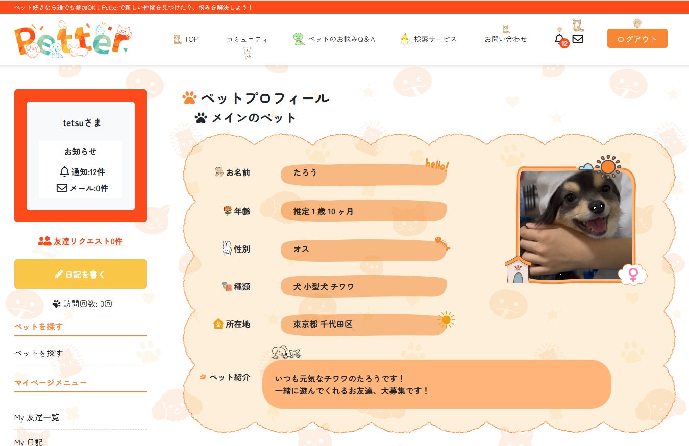 会員制ペット交流・情報交換サイト「Petter(ペッター)」が本日(7月1日)正式リリース