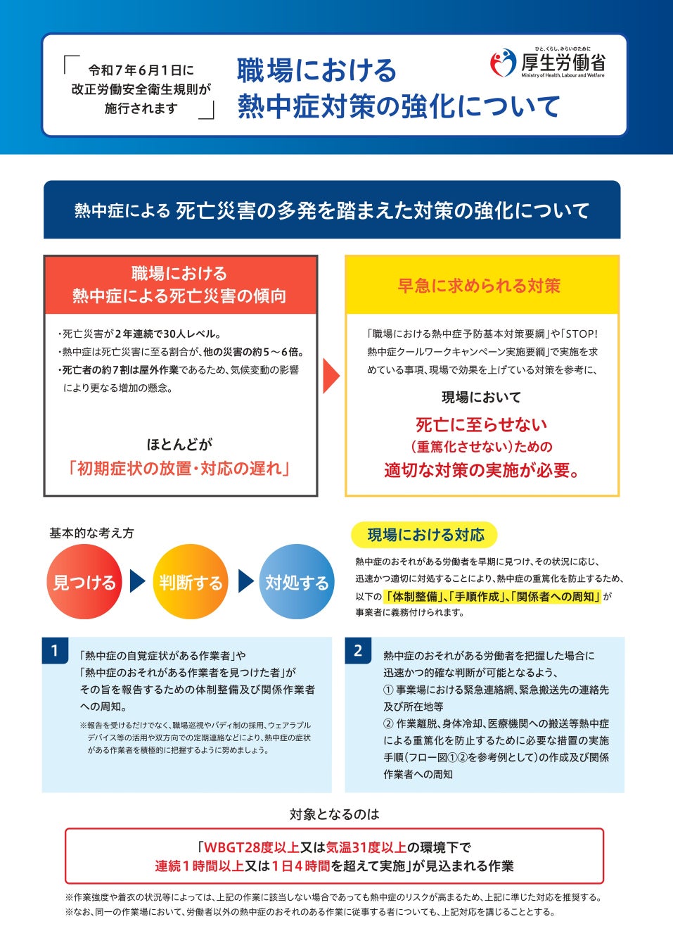 こうした背景を受けて、厚生労働省は2025年6月1日から職場の熱中症対策を罰則付きで義務化することを決定しました。