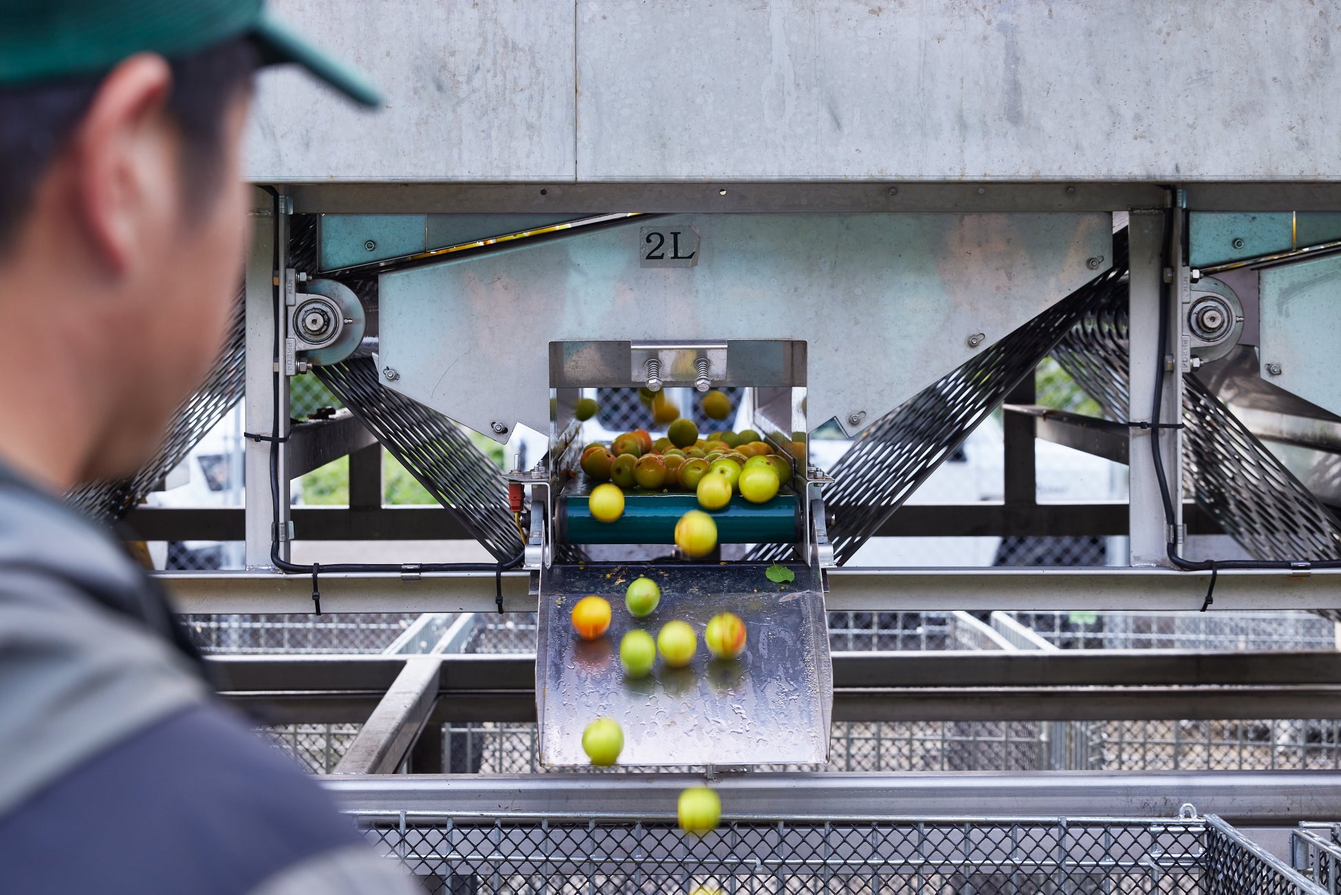 工場では、年間を通じて梅干しの生産を行っています。1日あたりの製造量は3~5トン。15,000パック(繁盛期には20,000パック)もの梅干しを毎日製造しています。これだけの製造量をキープできているのは、地元契約農家からの安定的な梅の供給があるから。