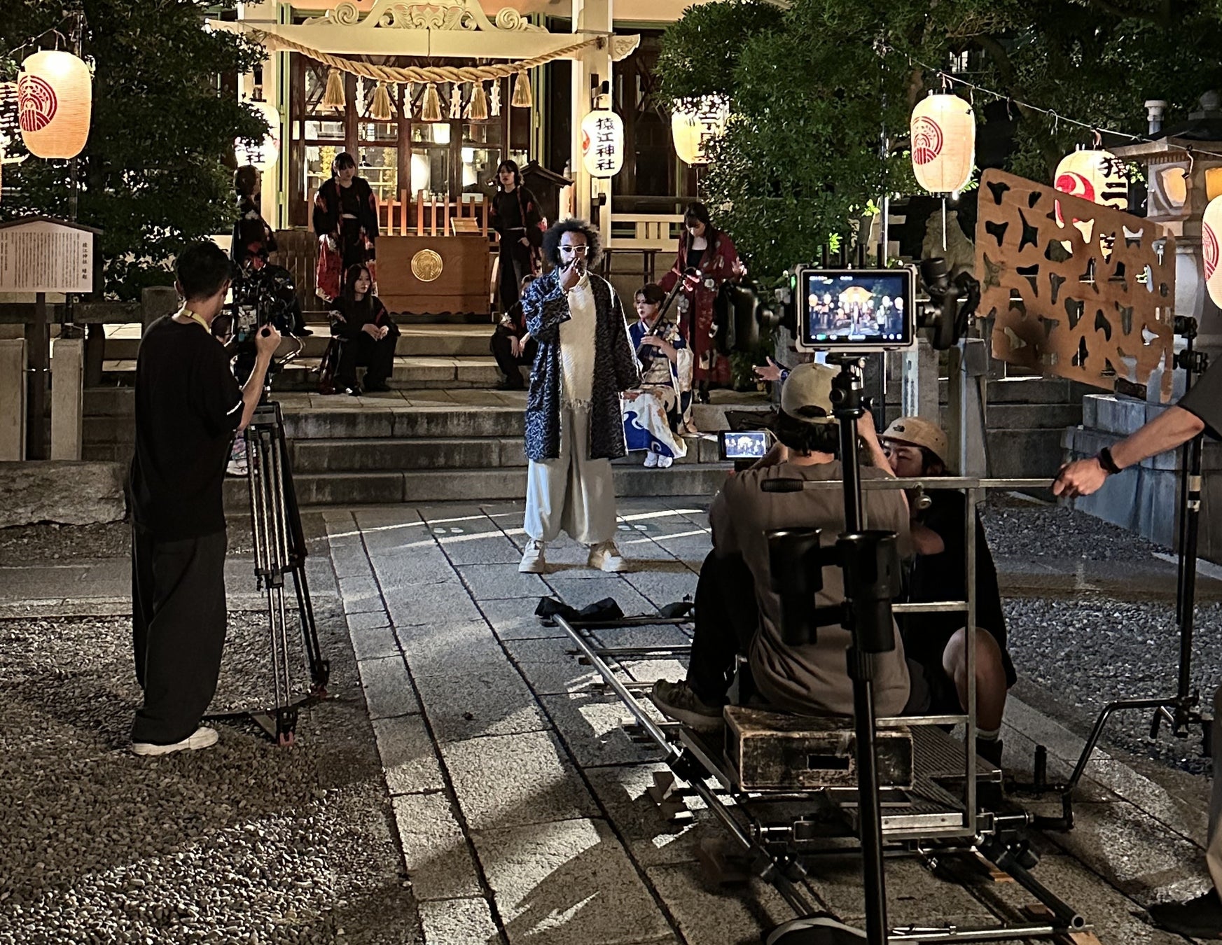 歴史ある神社の静謐な空間に現代的な照明演出を加えることで、伝統とモダンが交錯する映像表現を実現しました。