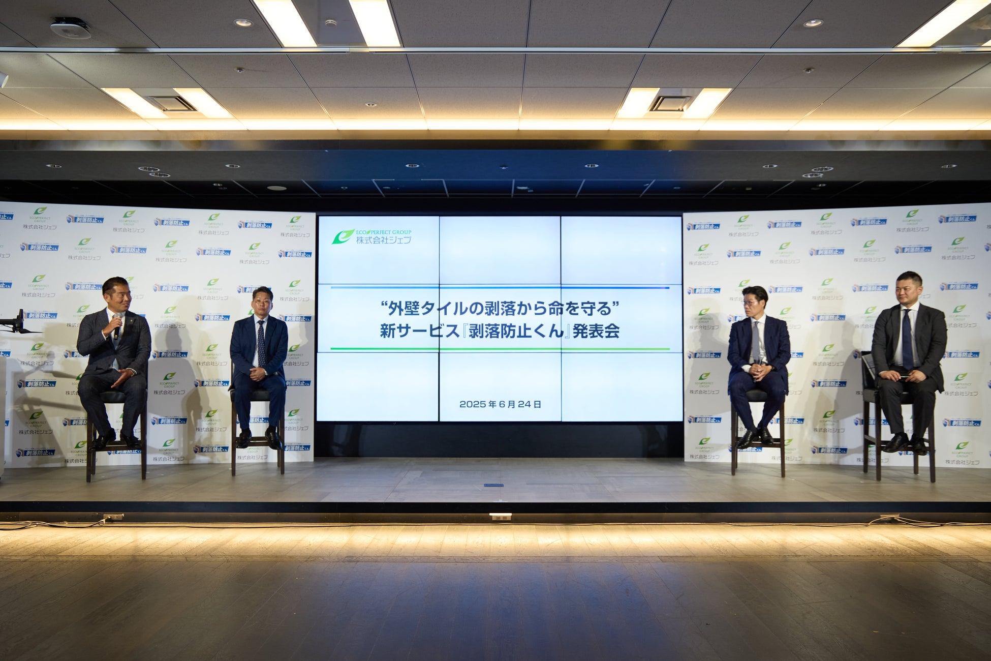 株式会社ジェブ(本社:神奈川県横浜市、代表取締役:太田 猛也、以下当社)は、ドローンによる赤外線カメラでの建物の剥落診断と外壁タイルの剥落防止コーティングを一気通貫で行う新たな外壁保全サービス、『剥落防止くん』の提供を開始いたします。それに伴い、「“外壁タイルの剥落から命を守る”新サービス『剥落防止くん』発表会」を2025年6月24日(火)に開催いたしました。