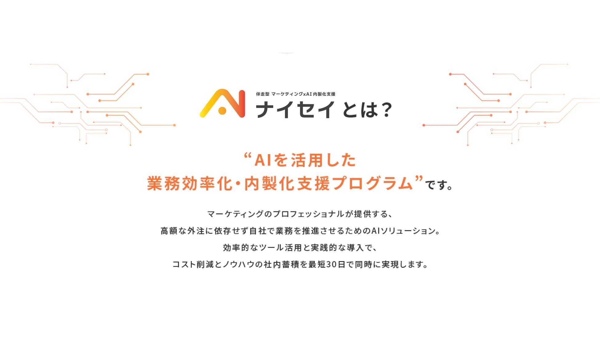 最短30日で“外注依存”からの脱却を支援。生成AI活用による伴走型 マーケティング×AI 内製化支援サービス『ナイセイ』正式リリース