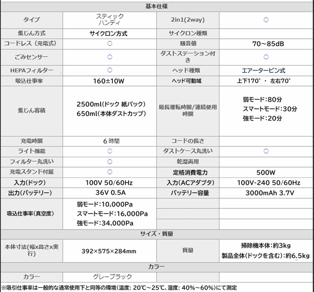 34000Paの強力吸引&センサーによる自動吸引力調整