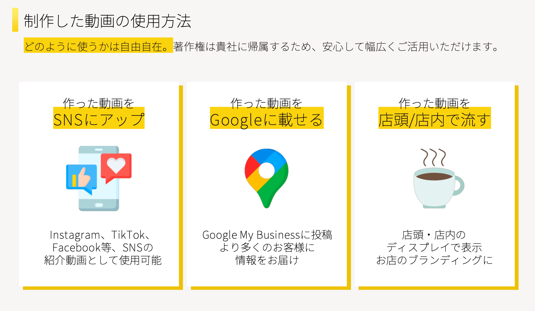 1,000社以上のSNS運用実績に基づいた構成ノウハウにより、「誰でも・すぐに・成果につながる」動画制作を可能にしました。