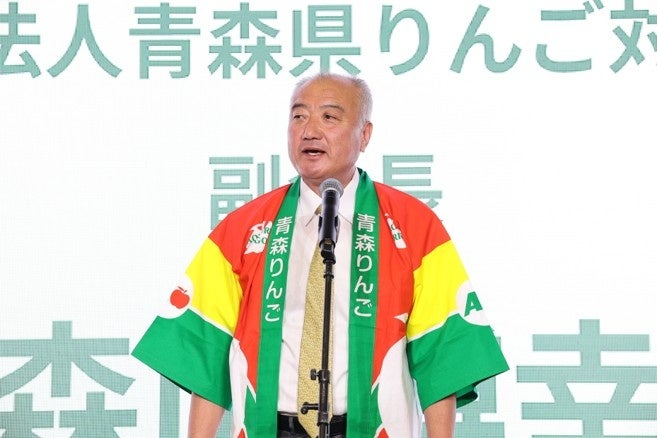 冒頭では、主催者である青森県りんご対策協議会の森山 博幸副会長より、「青森りんご植栽150周年」について、「3本の苗木から始まった青森りんごですが、先人たちが様々な試練などを乗り越え、おかげさまで日本のりんご生産量を大きく担っています。この青森りんご植栽150周年を機会に、消費者の皆様に喜んでいただけるPR活動をしていきたいと思います。」と想いが語られました。また、京浜関東青森りんごの会の村上 政治会長からは「これからも美味しくて高品質な青森りんごを皆様に届けるため、努力と挑戦を続けてまいります。今後とも青森りんごを末永く愛していただきたい。」とメッセージを送りました。