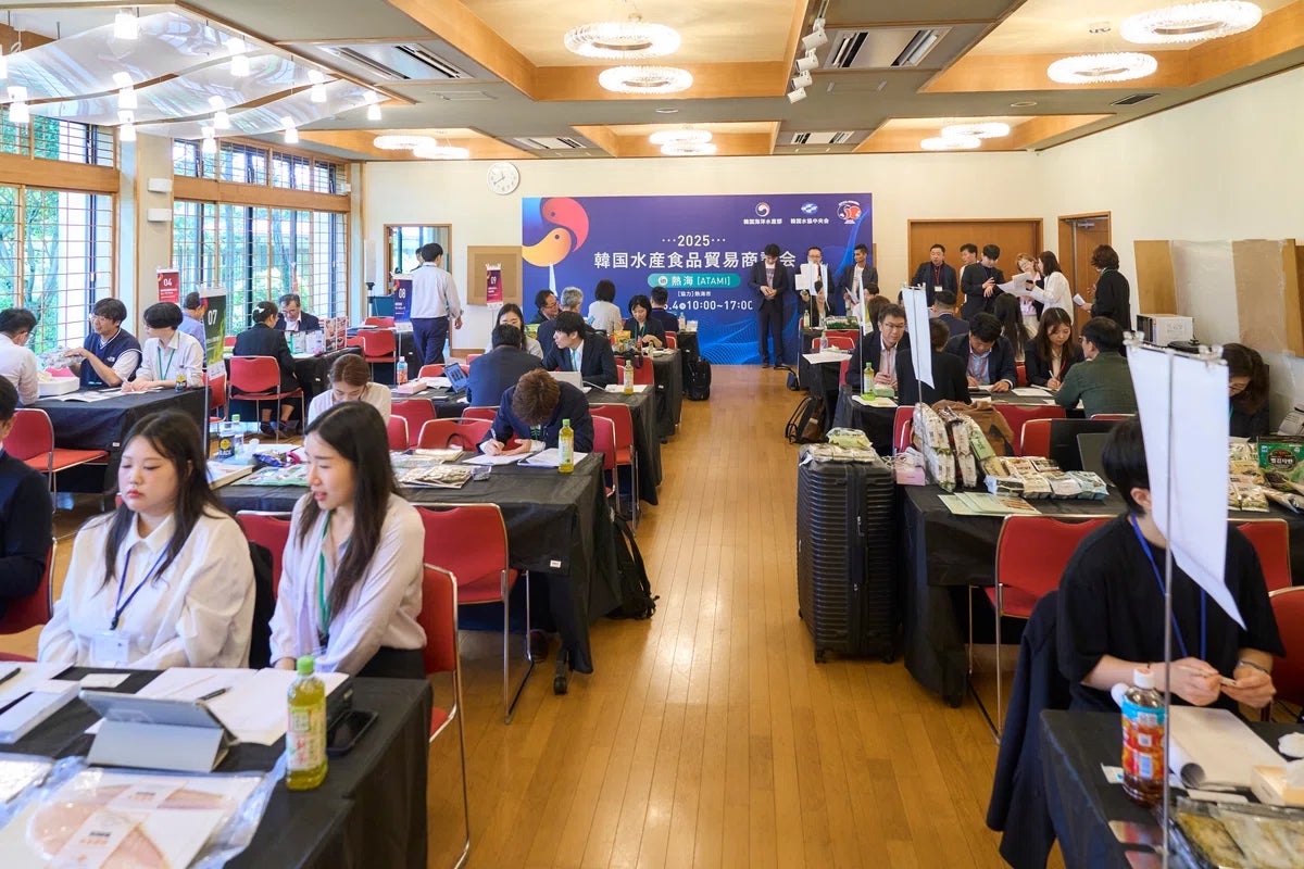 韓国の半官半民企業である韓国水協中央会 東京事務所は、2025年6月4日(水)に静岡県熱海市の「起雲閣」にて『韓国水産食品貿易商談会』を開催しました。厳選された韓国の水産食品輸出企業15社が本イベントの出展者として参加し、当日は多くの日本のバイヤー企業が訪れ、大盛況のイベントとなりました。