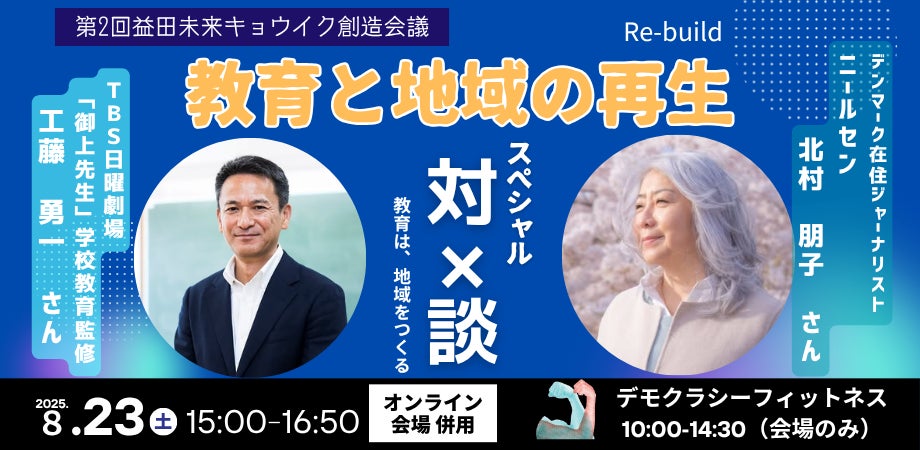 教育改革の第一人者・工藤勇一氏(オンライン登壇)と、デンマーク在住ジャーナリスト・ニールセン北村朋子氏が、次の問いを軸に語り合います: