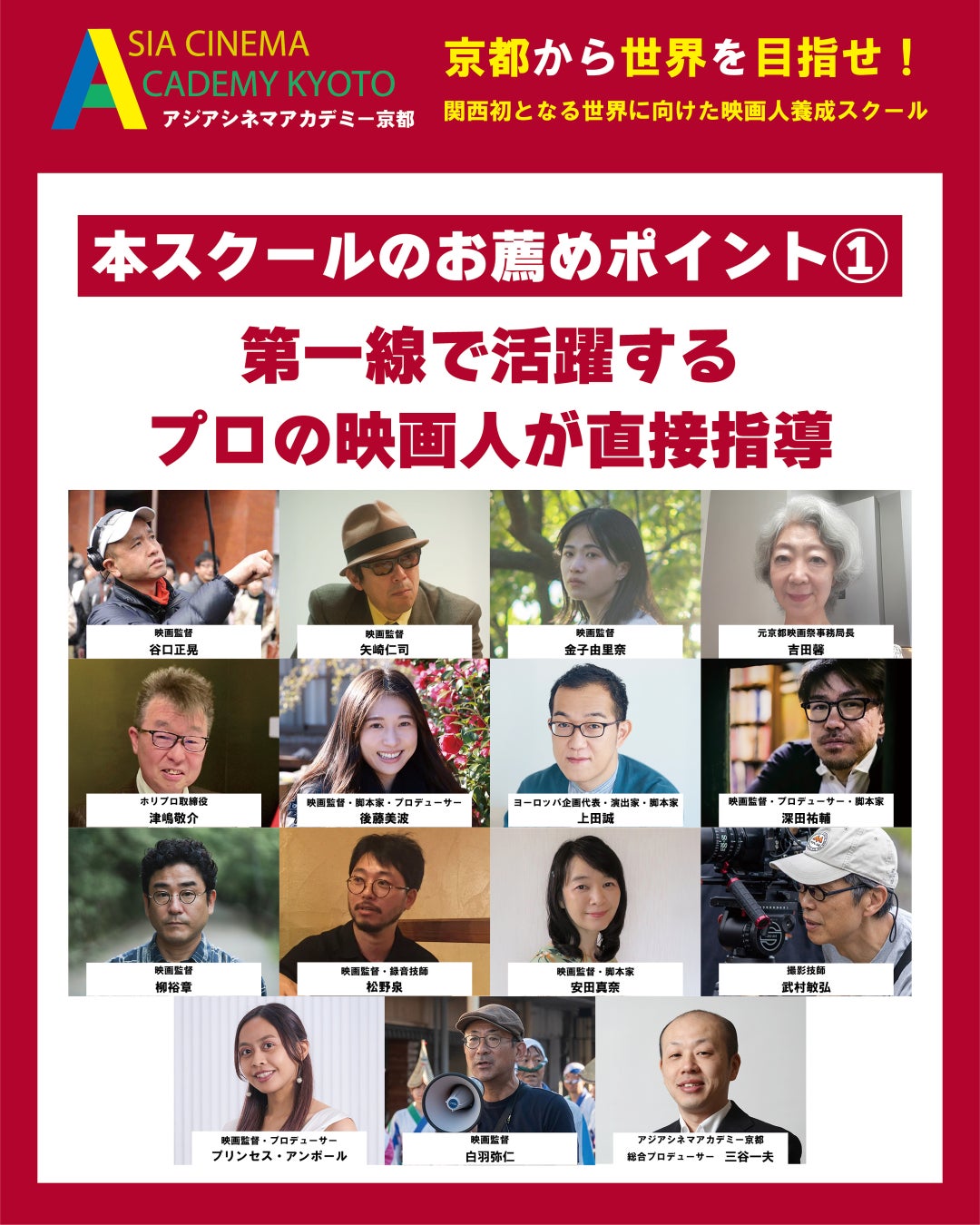 かつて都として栄えた京都は、日本の伝統芸能の発祥の地の一つであり、新しい文化・芸能が華やかに繰り広げられた舞台です。特に能楽、狂言、歌舞伎、日本舞踊、邦楽、落語など様々な分野で京都が重要な役割を果たしてきました。私はこれまで主に東京で映画に関わる企画やクリエイターの育成に長年携わってきましたが、今回を機に芸能が根付いた京都の地で本格的にものづくり、そして映画に関わる人材の育成にチャレンジしてみたいと思います。国籍や場所の垣根なく、アジア視点でものづくり思考ができる俳優・監督・脚本家・プロデューサーを京都から輩出できれば幸いです。特に映画の企画・プロデュースを本格的に学べる場所は東京にも少ないので、映画ビジネスに興味のある異業者の方々や俳優や脚本家からも積極的に参加してほしいです。新しい出会いを楽しみにしています。