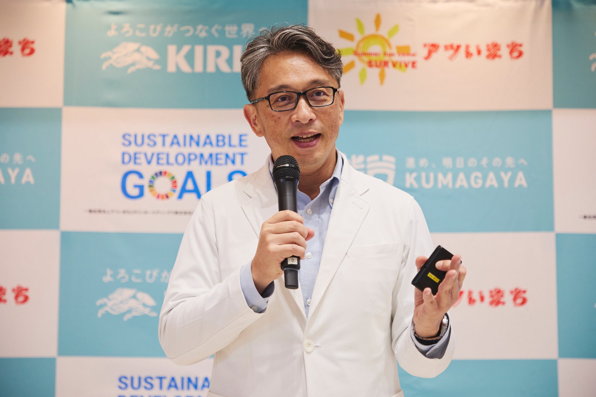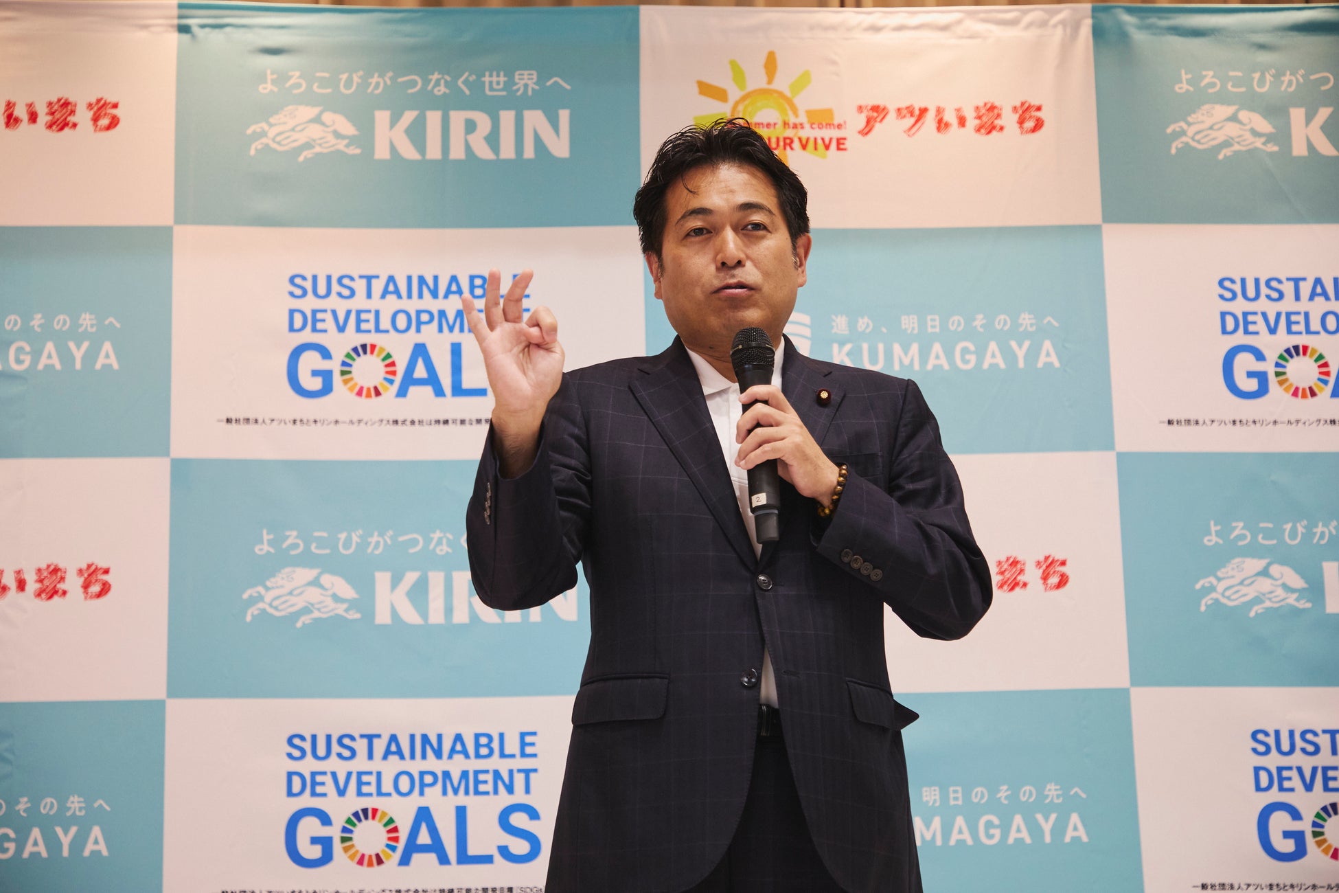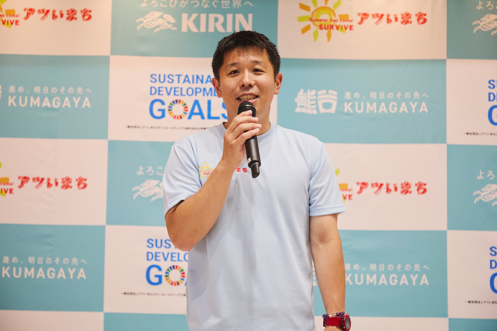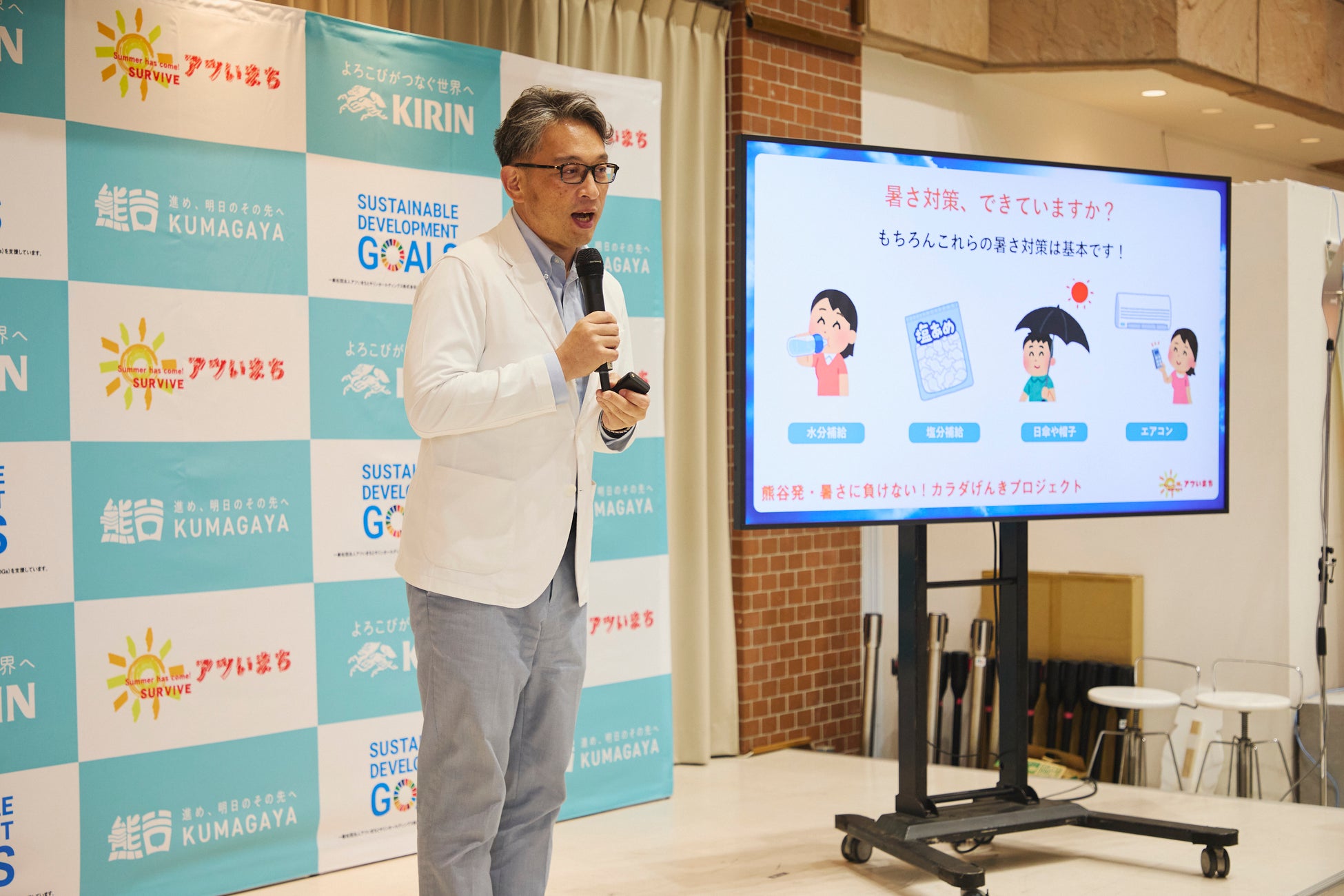 本プロジェクトは、全国的に猛暑の影響が深刻化する中、「日本一暑いまち」として知られる埼玉県熊谷市を拠点に、夏を健康に過ごすための新たな対策を提案・実施していくことを目的としています。当日は、文部科学副大臣の野中厚氏をはじめ、熊谷市の担当者や今年キリンとともに様々な施策を実施する熊谷市の企業関係者が登壇し、プロジェクトの趣旨や今年の取り組みについて発表しました。