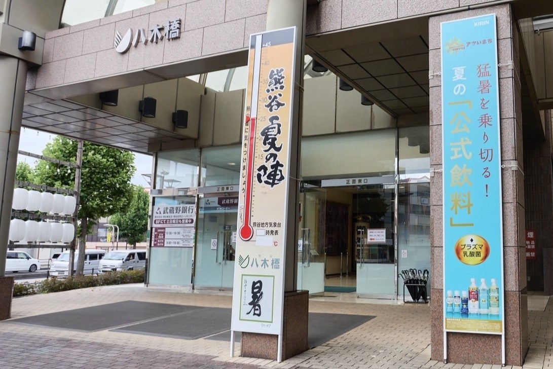 熊谷市のランドマークである八木橋百貨店正面東口前の「八木橋大温度計」横に、同サイズの新たな大型ボードを掲出します。連日厳しい暑さが続く中、地域の健康をサポートすべく、猛暑を乗り切るための公式飲料として、キリンの「プラズマ乳酸菌」飲料を活用した取り組みを実施いたします。