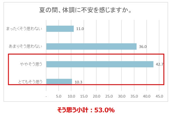 ■約2人に1人が「夏の間、体調に不安を感じている」と回答