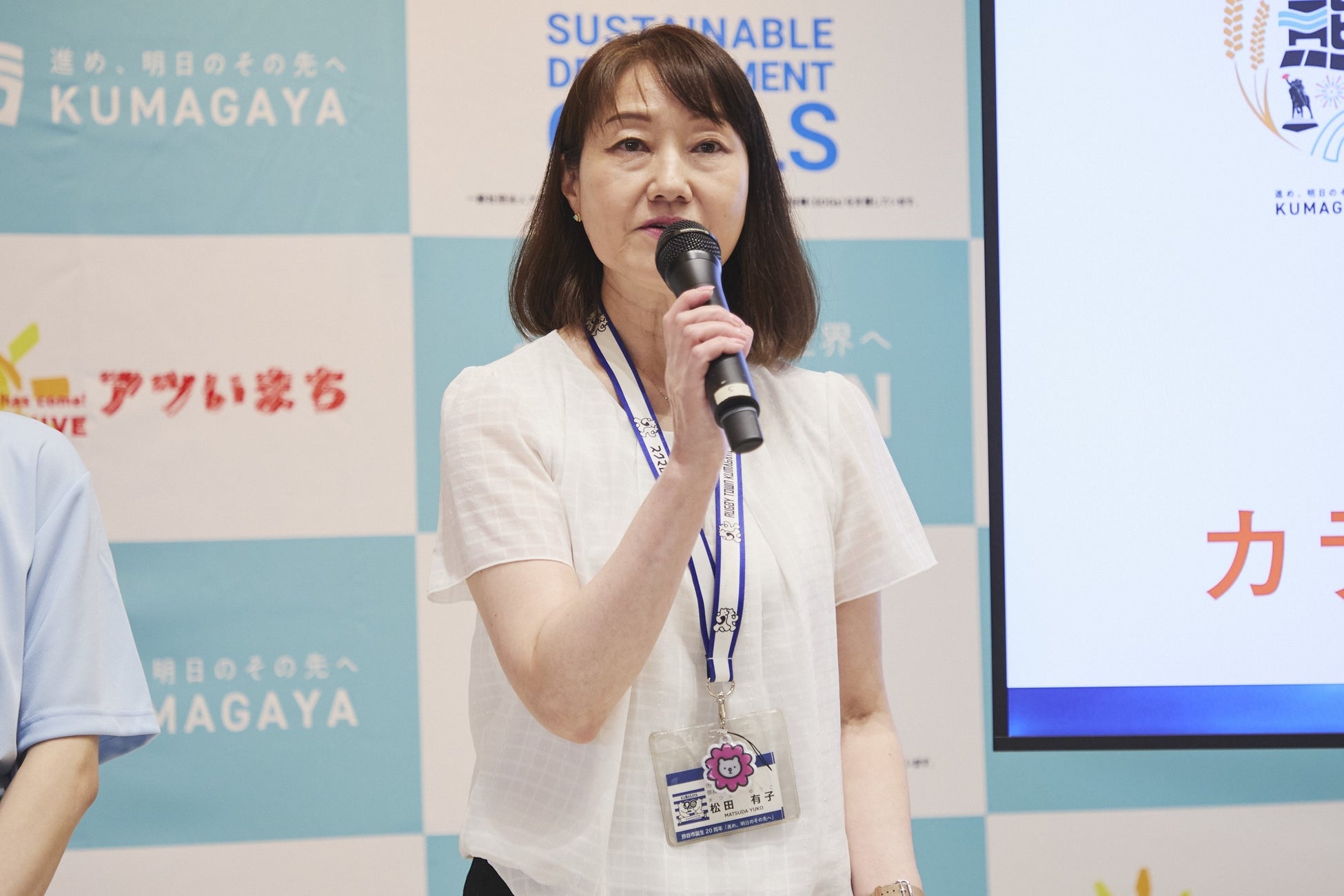 熊谷市市民部長 松田有子氏は、市長に代わって開会の挨拶を行い、「アツいまち」関係者への感謝を述べるとともに、猛暑の中で健康づくりイベントが開催される意義を強調しました。また、市としても熱中症対策を多面的に推進していることを紹介し、市民の健康を守る取り組みを今後も進めていく考えを強調しました。