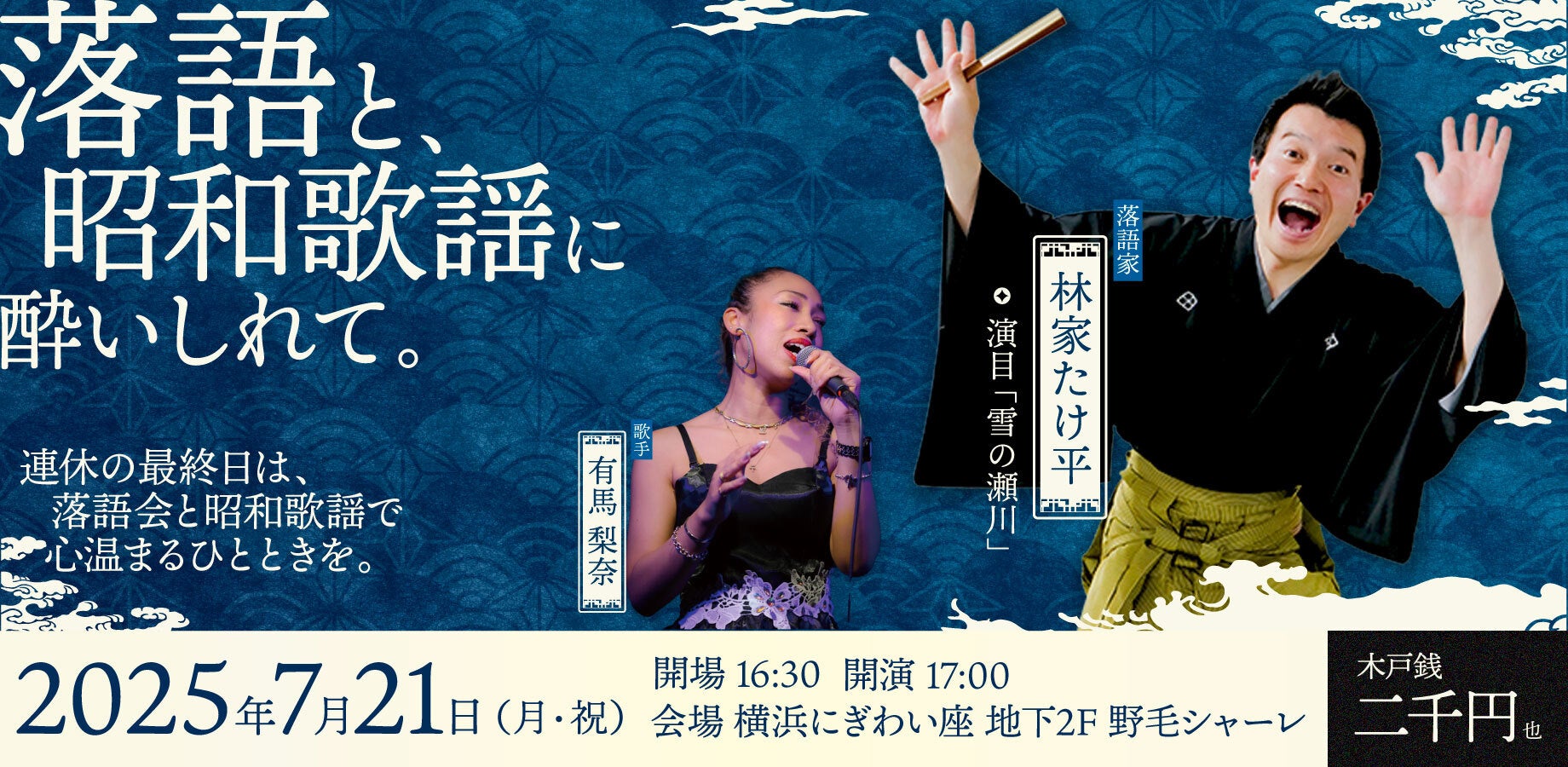 また、落語の会では林家たけ平氏による美しい人情噺「雪の瀬川」をお楽しみください。