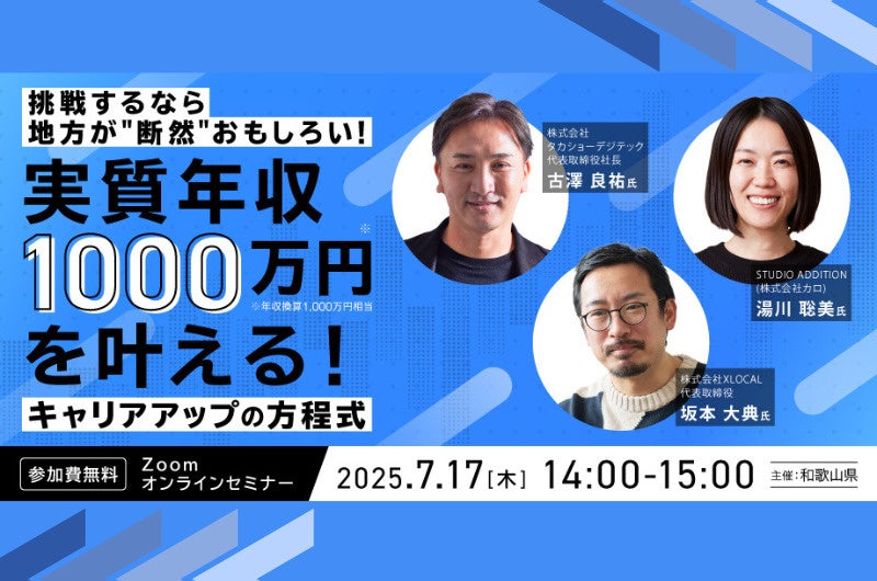 『挑戦するなら地方が”断然”おもしろい!実質年収1,000万円を叶える!キャリアアップの方程式』7/17オンラインセミナー開催決定