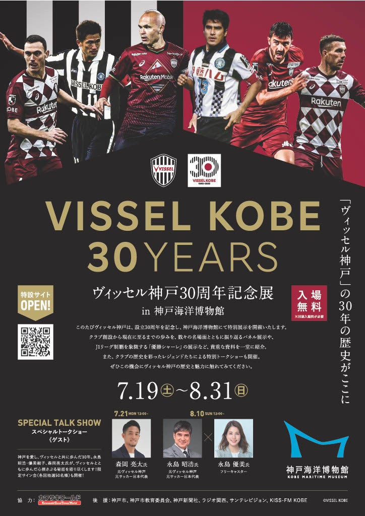 神戸海洋博物館では、2025年7月19日(土曜)から2025年8月31日(日曜)まで、企画展「ヴィッセル神戸30 周年記念展 in 神戸海洋博物館」を開催いたします。