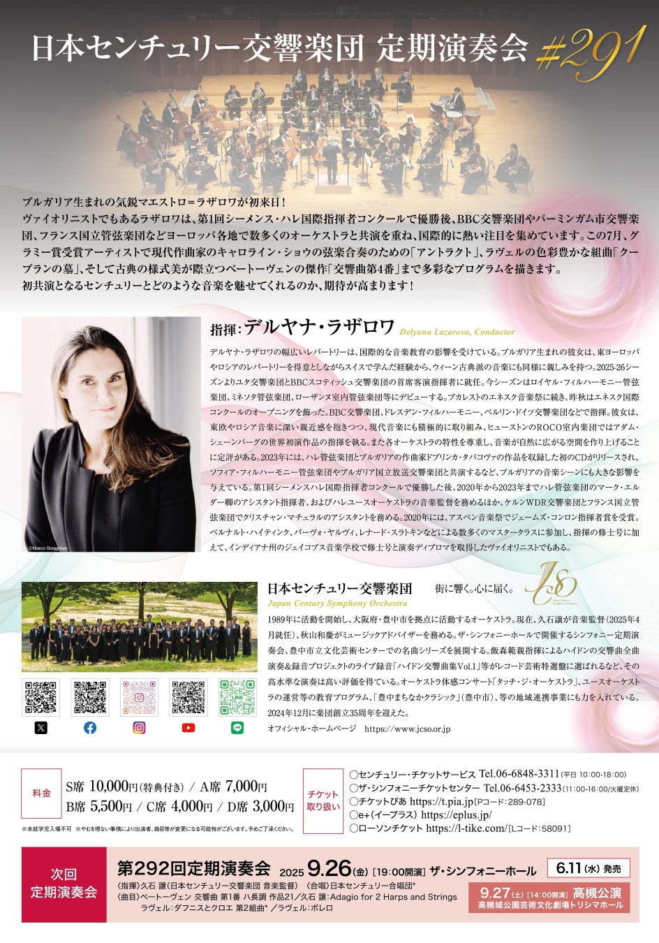 日本センチュリー交響楽団は、7月25日に開催する「第291回定期演奏会」において