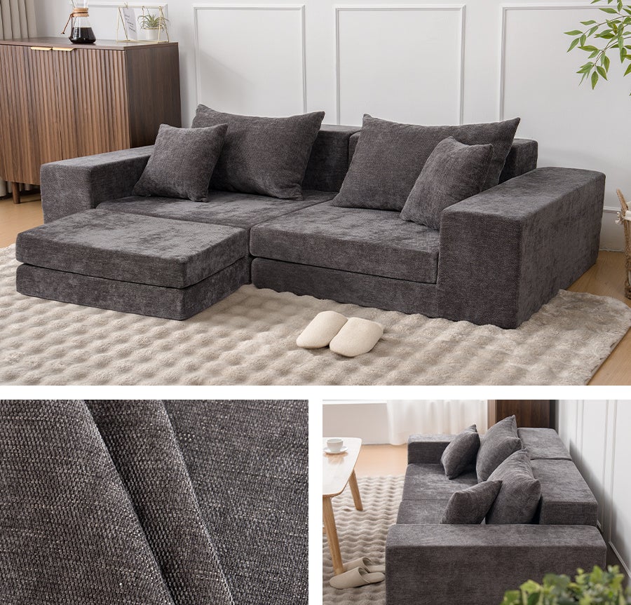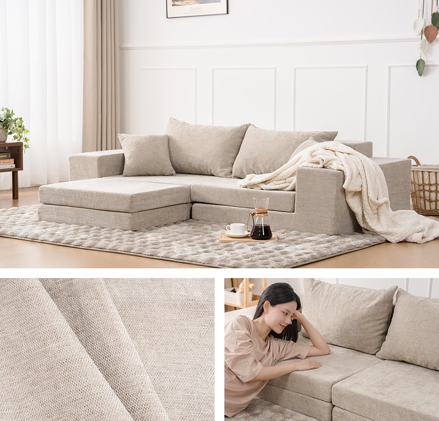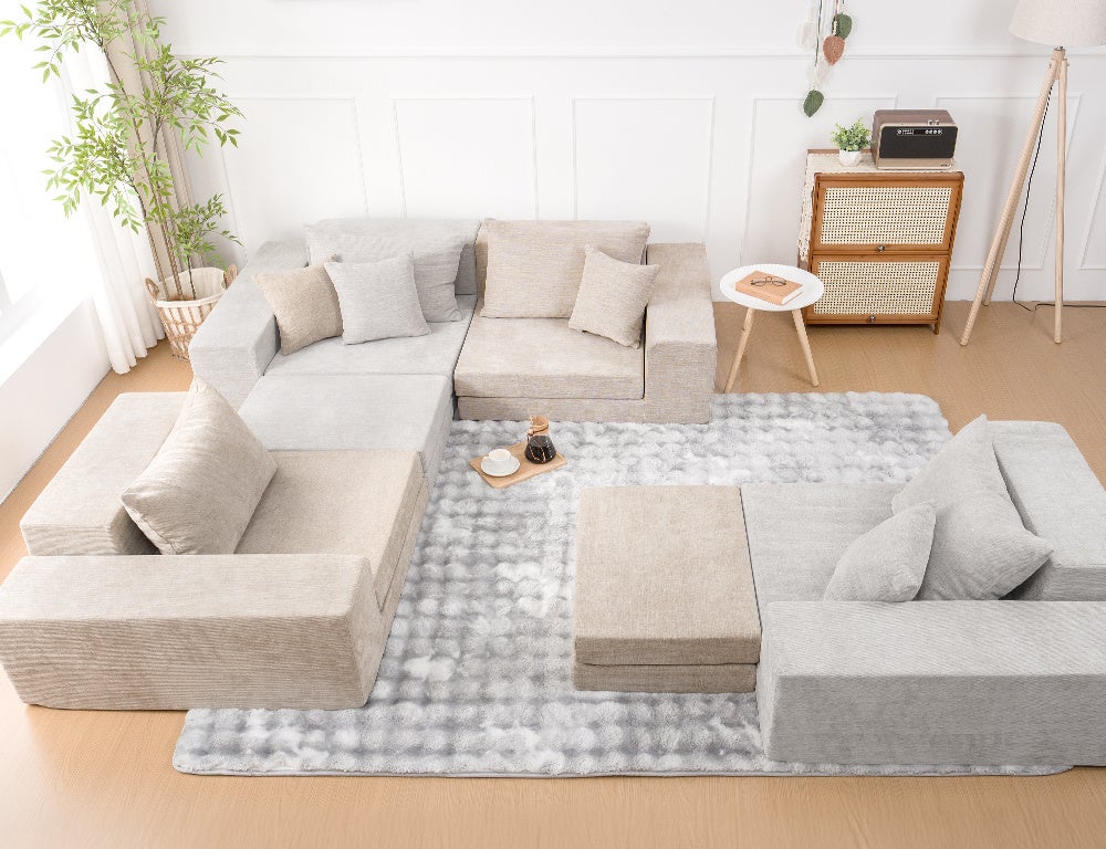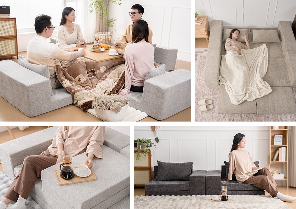 HOMFINEのモジュールソファは、日常のシーンに応じて変化し続ける、実用性と自由度を兼ね備えた設計です。
