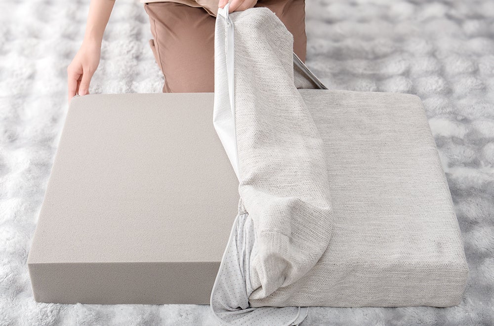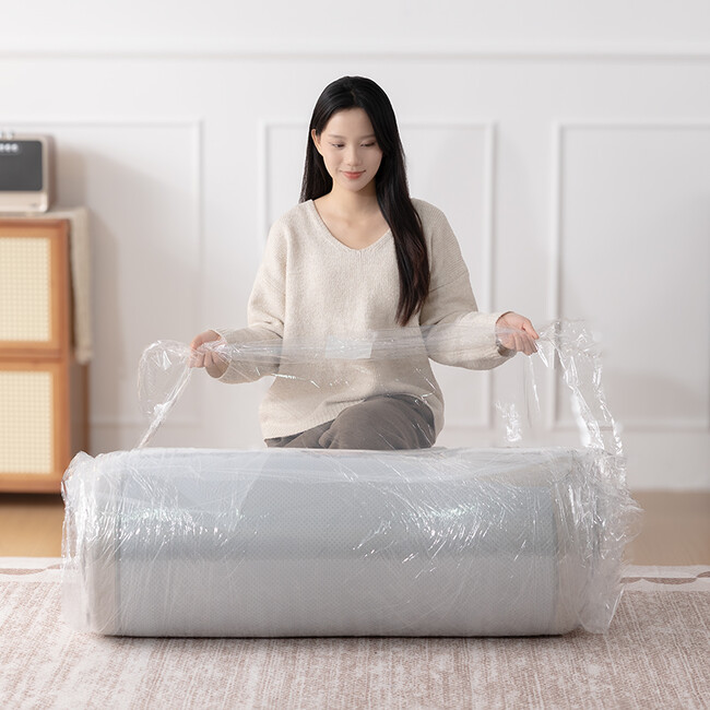 開封後は、圧縮されていたウレタンが空気を含みながらゆっくりと復元。時間の経過とともに本来の厚みと弾力を取り戻し、見た目からは想像できないほどのボリューム感と快適な座り心地へと変化します。