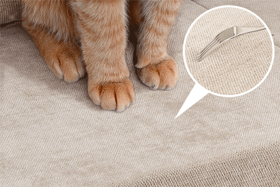 摩擦や引っかきに強く、キズがつきにくい高耐久素材。爪の引っかかりがなく、毛玉も発生しにくい生地です。