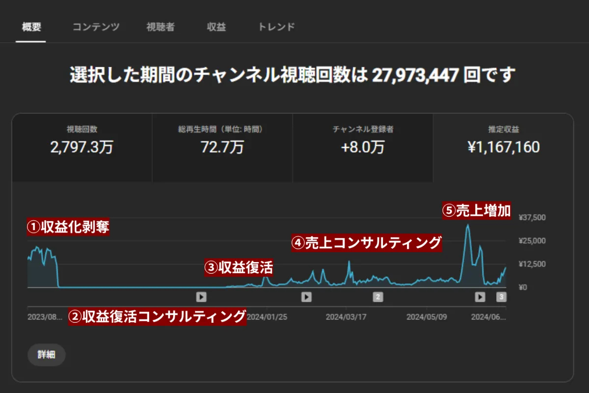 変化の激しいYouTubeにおいて、最新のガイドライン情報と、これまでに数多くのチャンネルを再生・復旧してきた知見をもとに、停止リスクを回避しながら継続的な収益構築を支援します。